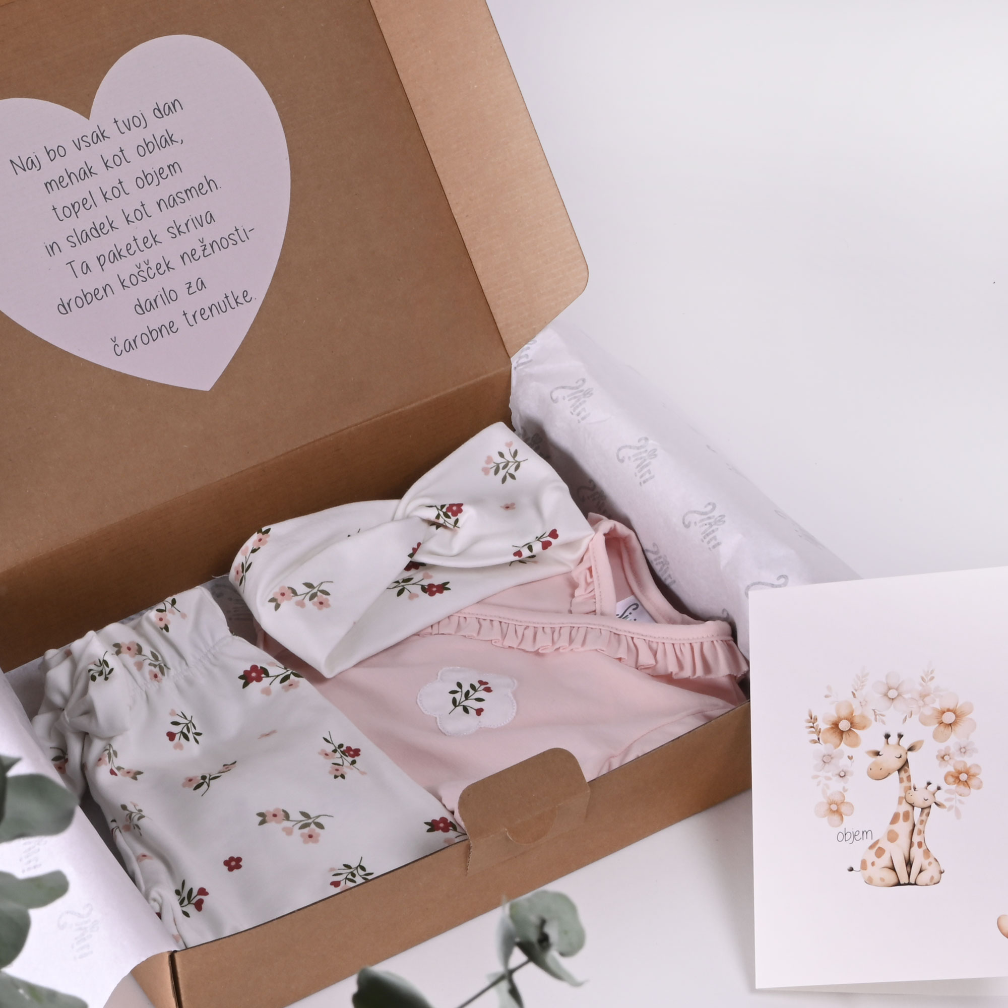 Nežen in premišljeno zasnovan darilni paket, ki združuje uporabnost, lep dizajn in osebno noto za najlepše trenutke.