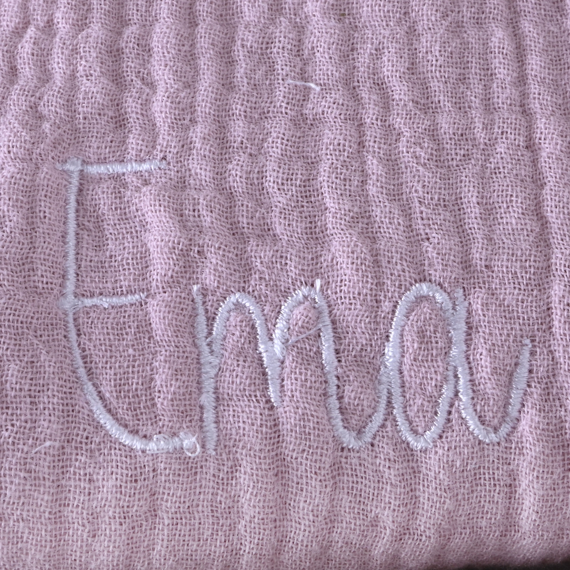 Posebno noto darilu doda tudi vezenje imena, ki ga dodamo pred zaključno izdelavi in posebna čestitka, v katero lahko napišete svoje posvetilo ali lepo željo ob rojstvu otroka.