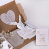 Ta darilni paket z mehkim zajčkom in nežno pleteno odejo je čudovita pozornost, ki bo razveselila tako otroka kot starše.