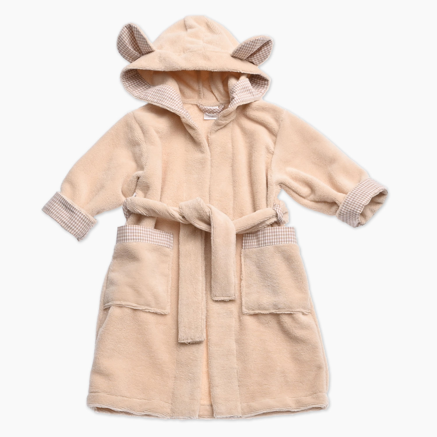 Otroški kopalni plašč v nežni bež barvi z ušeski na kapuci