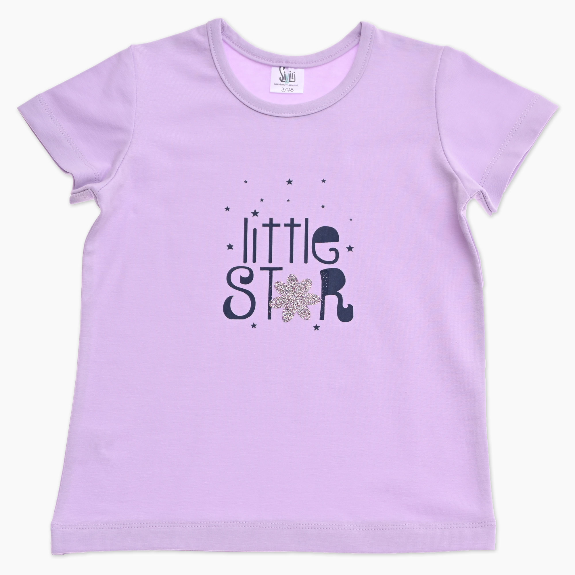 Lila otroška majica za punčko s kratkimi rokavi in napisom LITTLE STAR. Narejeno v Sloveniji!