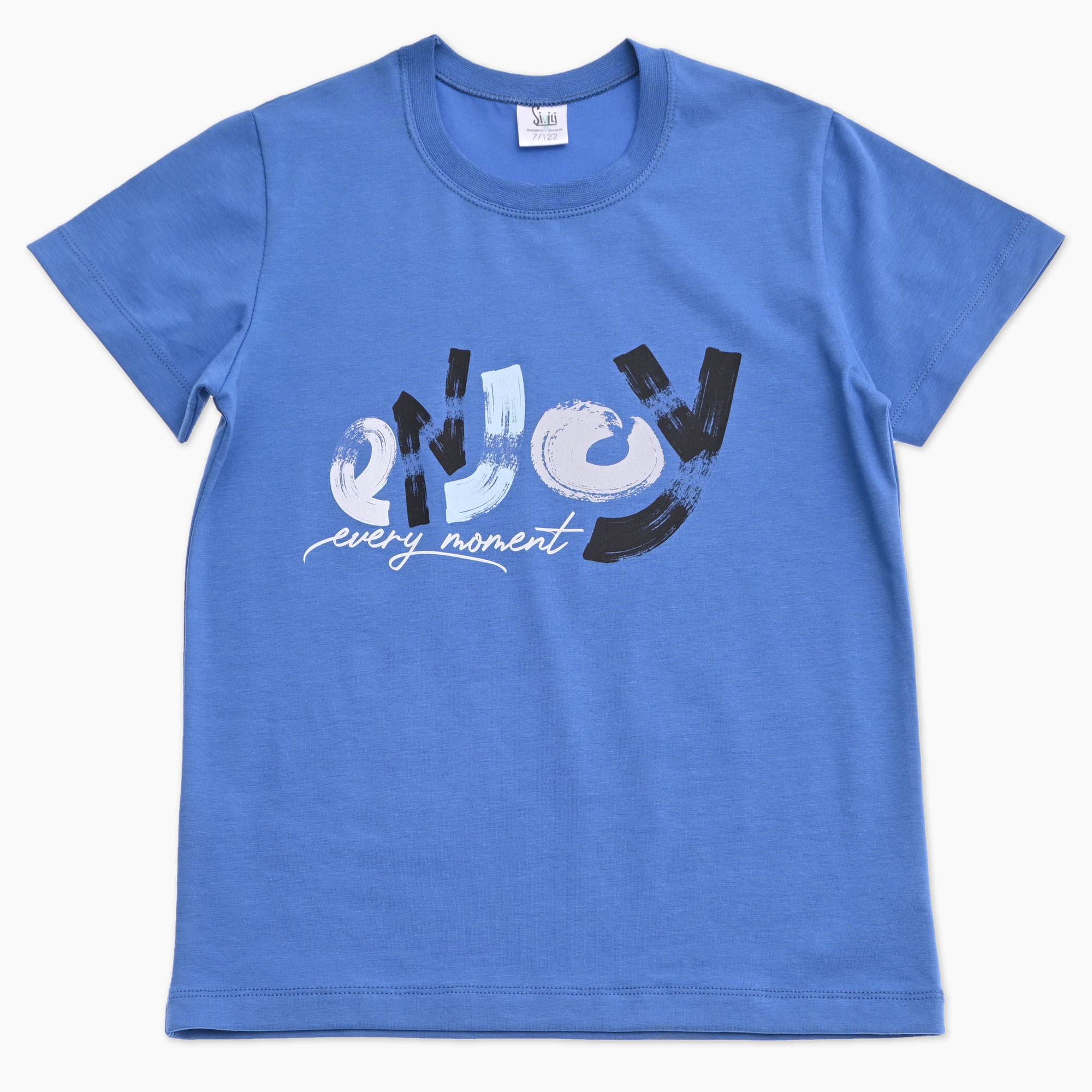 Otroška majica za fanta s kratkimi rokavi v modri barvi z napisom ENJOY. Izdelna v Sloveniji!