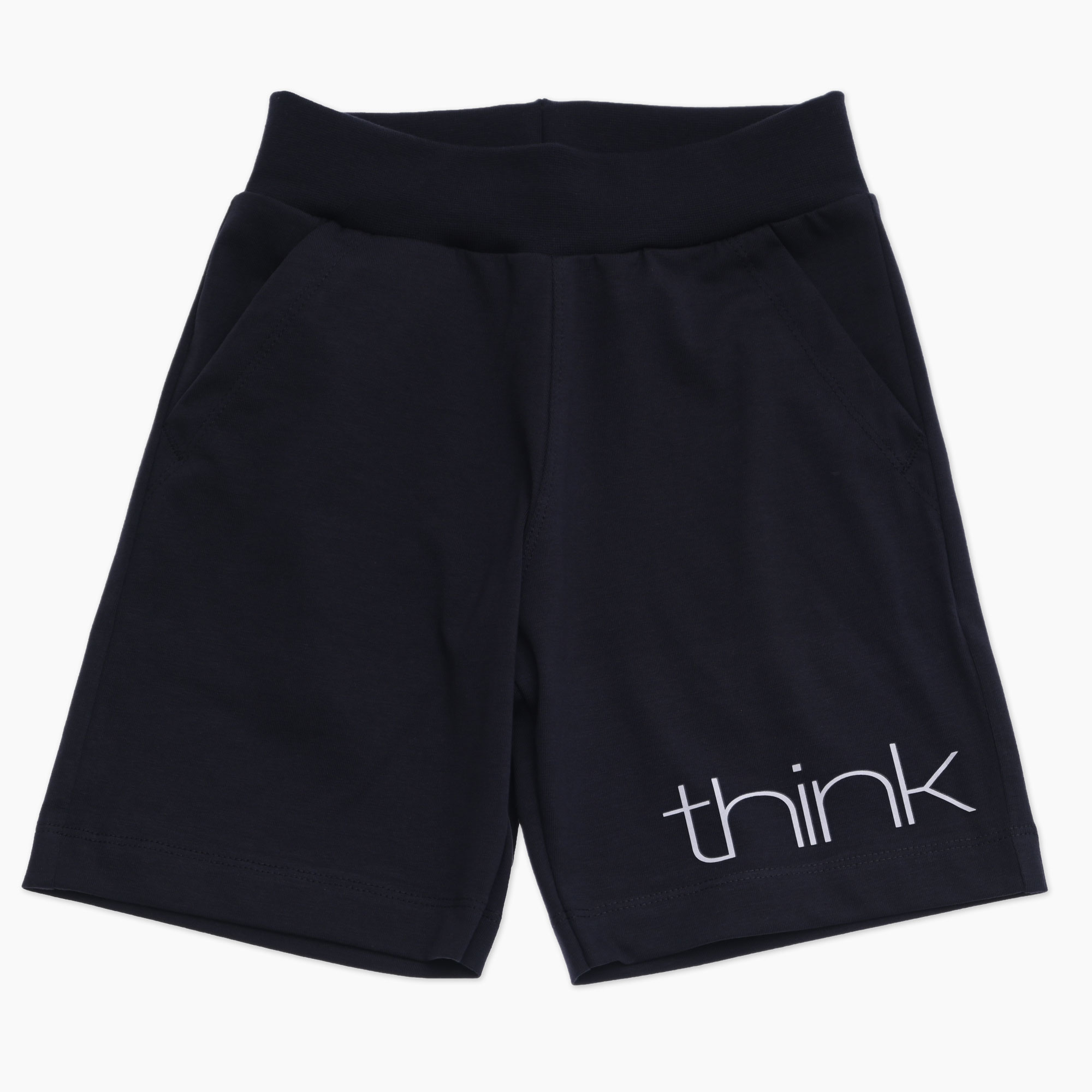 Otroške kratke hlače za fanta v temno modri barvi z napisom THINK BIG. Slovenski izdelek!