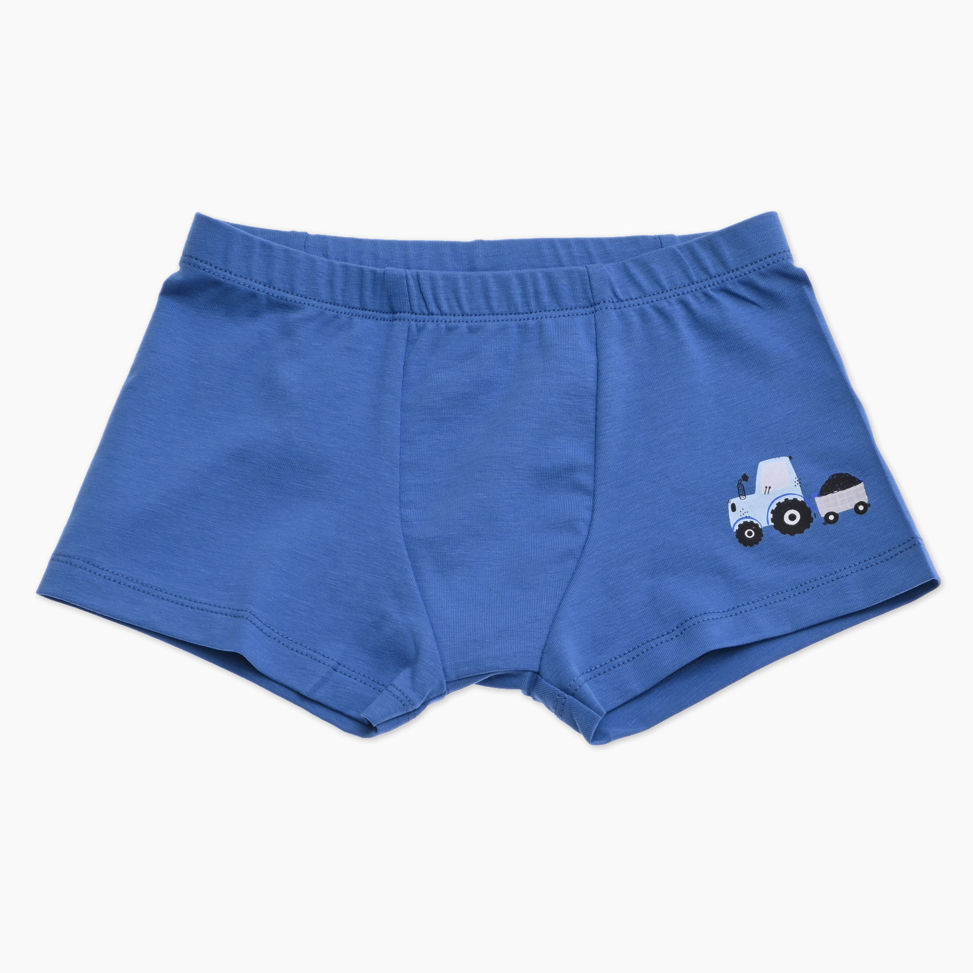 Otroške bokserice za fanta v modri barvi z igrivim tiskom traktorja s prikolico so odlična izbira za vsakodnevno udobje. Prikupen motiv bo navdušil vse male ljubitelje kmetijske mehanizacije medtem ko prijeten material zagotavlja popolno udobje.