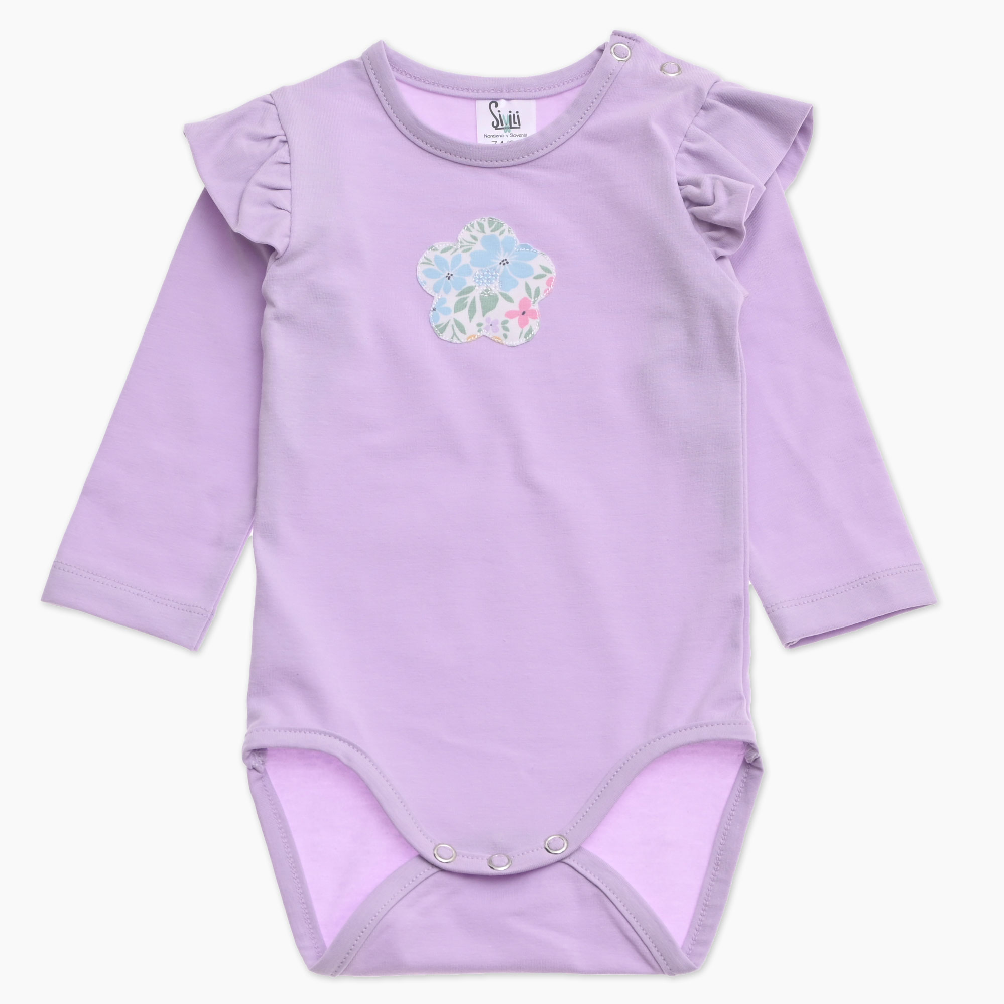 Otroški bodi za punčko v lila barvi z vezenim cvetom