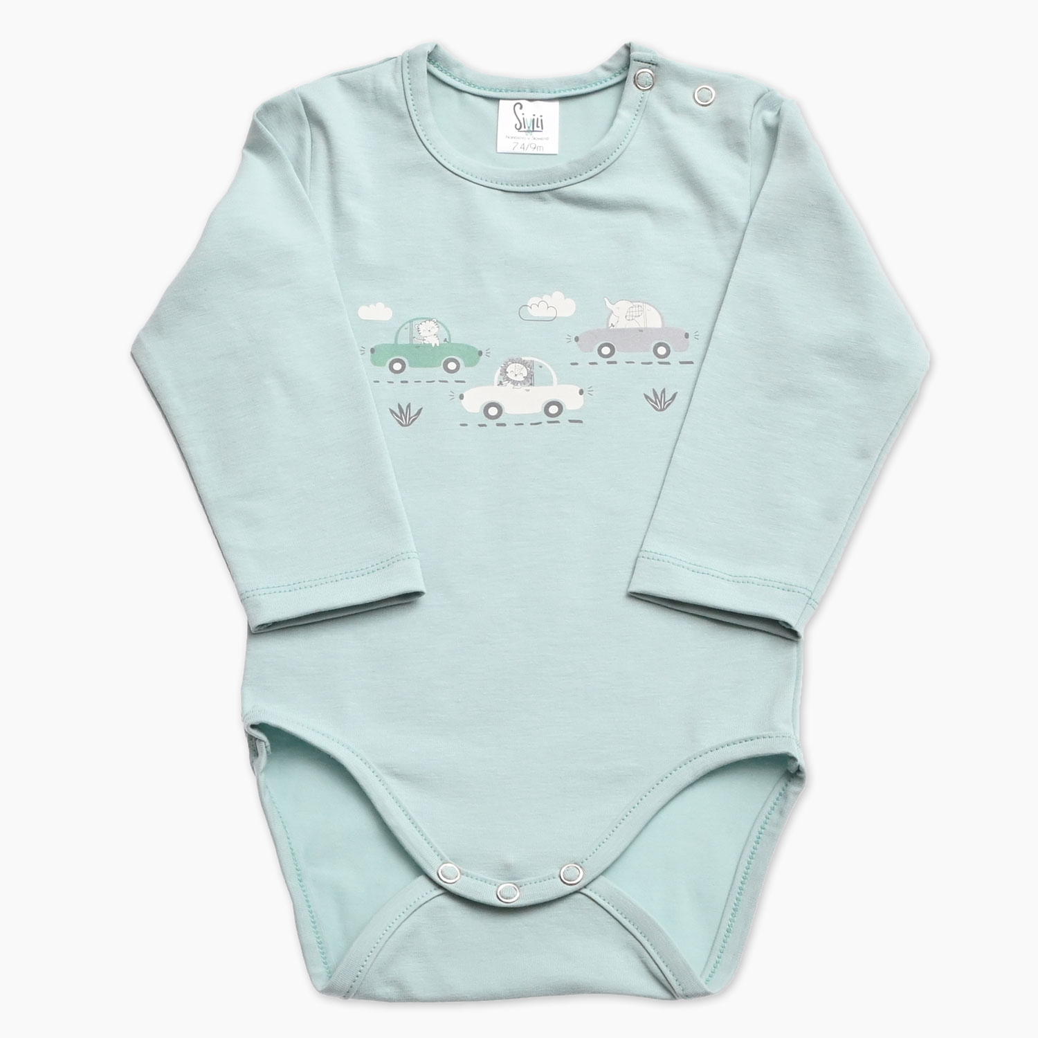 Otroški bodi v mint barvi s tiskom avtomobilov