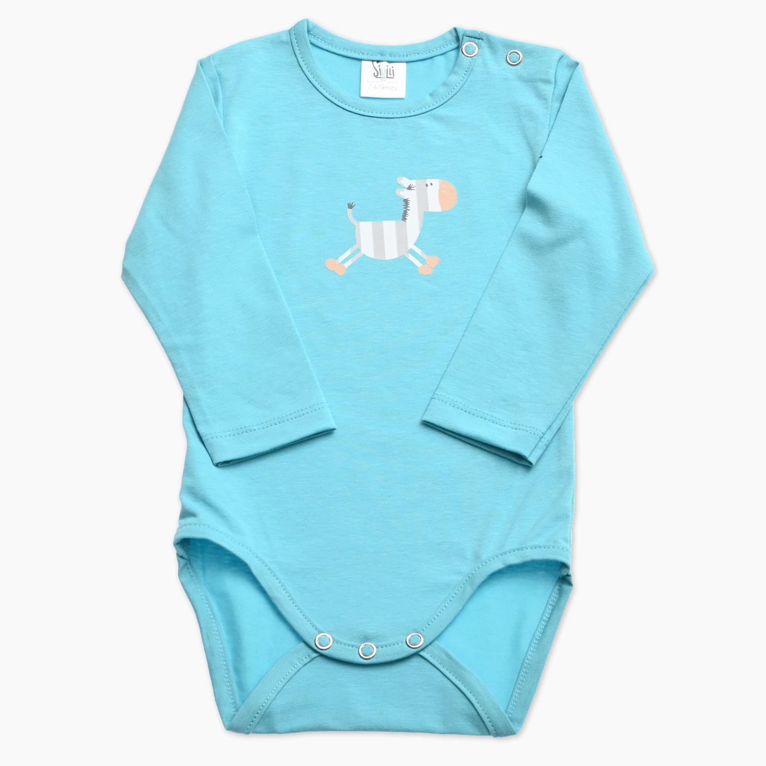 Mehak in udoben otroški bodi v živahni turkizni barvi s prikupnim tiskom zebre je popolna izbira za vsakodnevno nošenje. Izdelan je iz kakovostne, elastične tkanine, ki vsebuje 94 % bombaža in 6 % elastana, kar zagotavlja mehkobo, zračnost in popolno prileganje otrokovemu telesu.