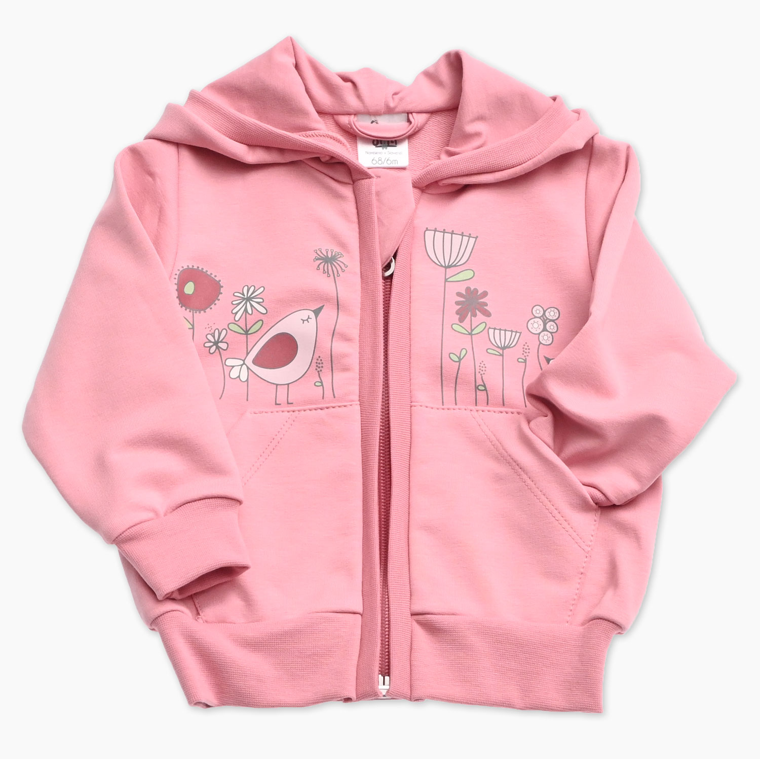 Roza otroška jopica za dojenčka s tiskom rožic in ptička