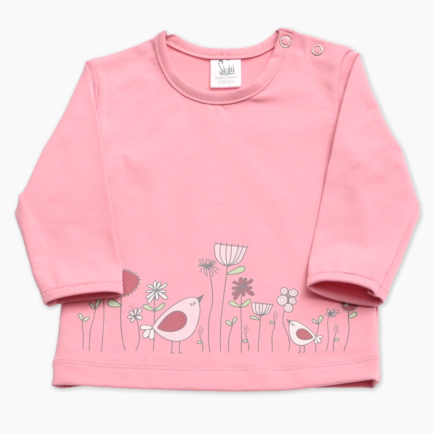 Otroška majica z dolgimi rokavi – ptički s cvetjem