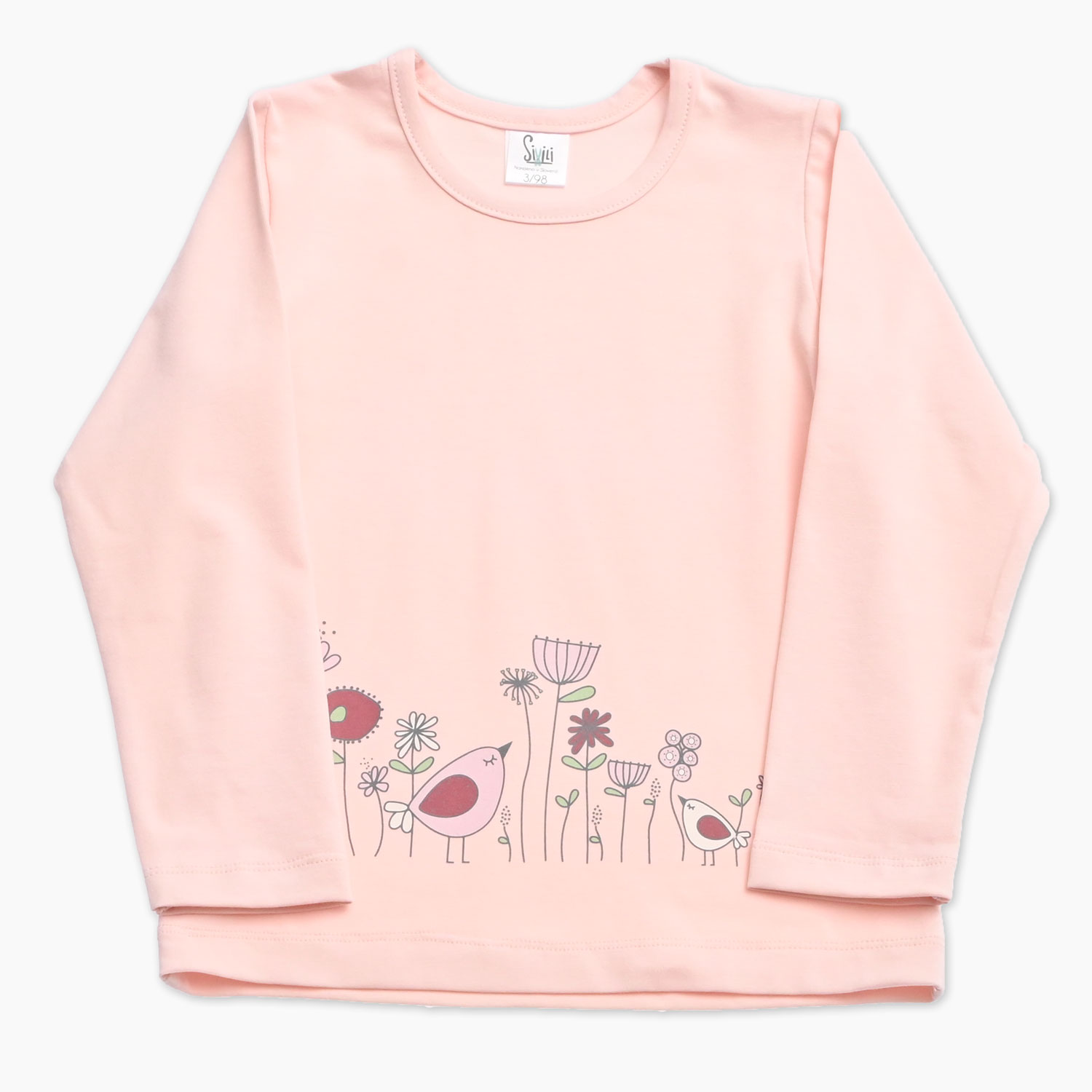 Otroška majica z dolgimi rokavi – ptički s cvetjem