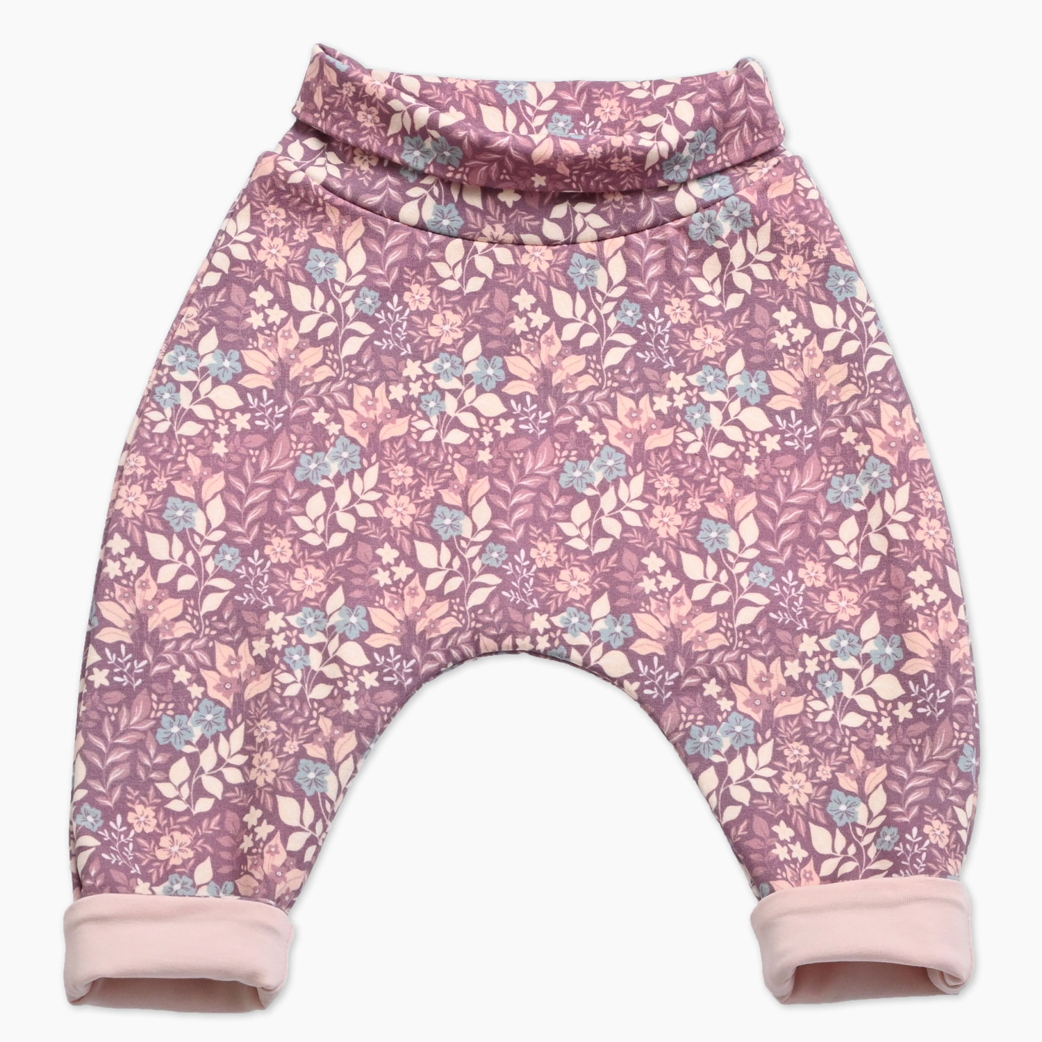 Marjeta – - Otroške baggy hlače za punčko s cvetličnim tiskom in volani