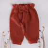 Otroške baggy hlače za punčko v opečni barvi z mašno na pasu