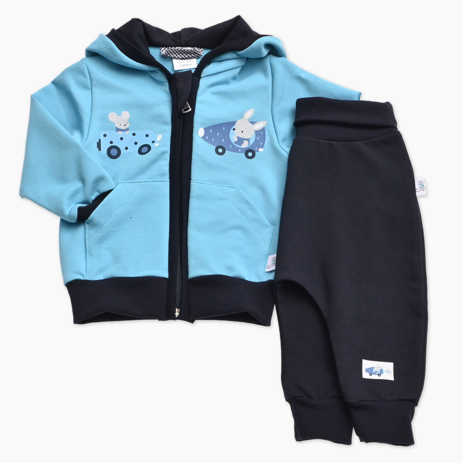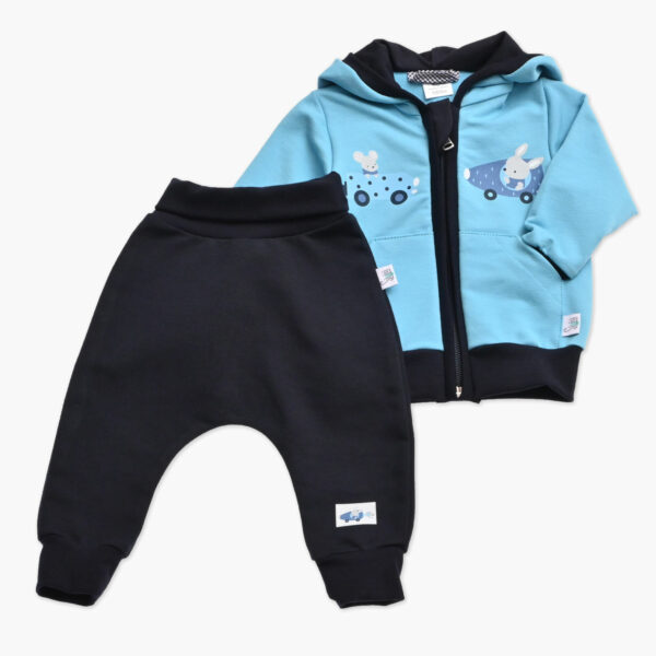Svetlo modra otroška trenirka za dojenčka z miškom v raketi