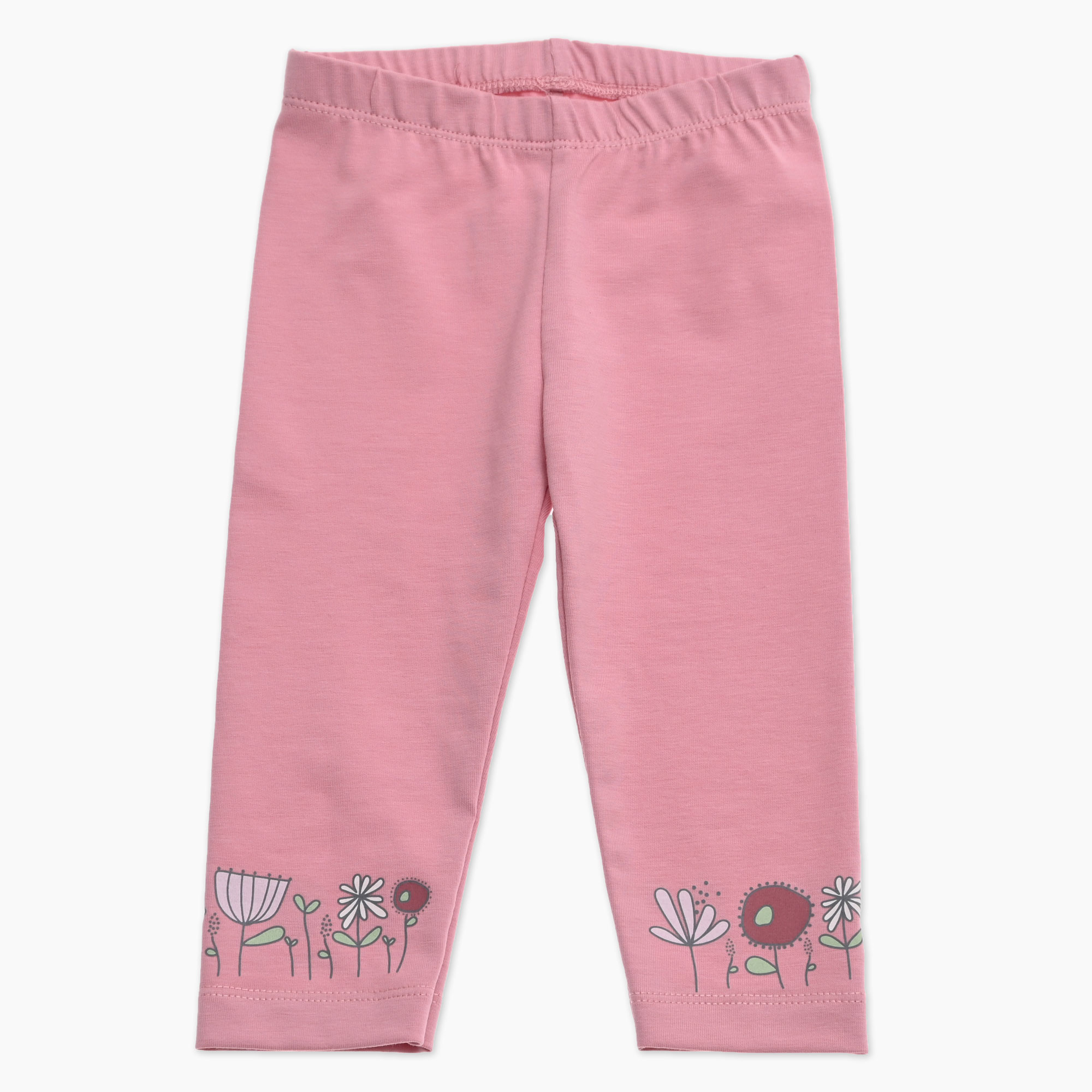 Otroške pajkice v umazano roza barvi s tiskom rožic na hlačnicah