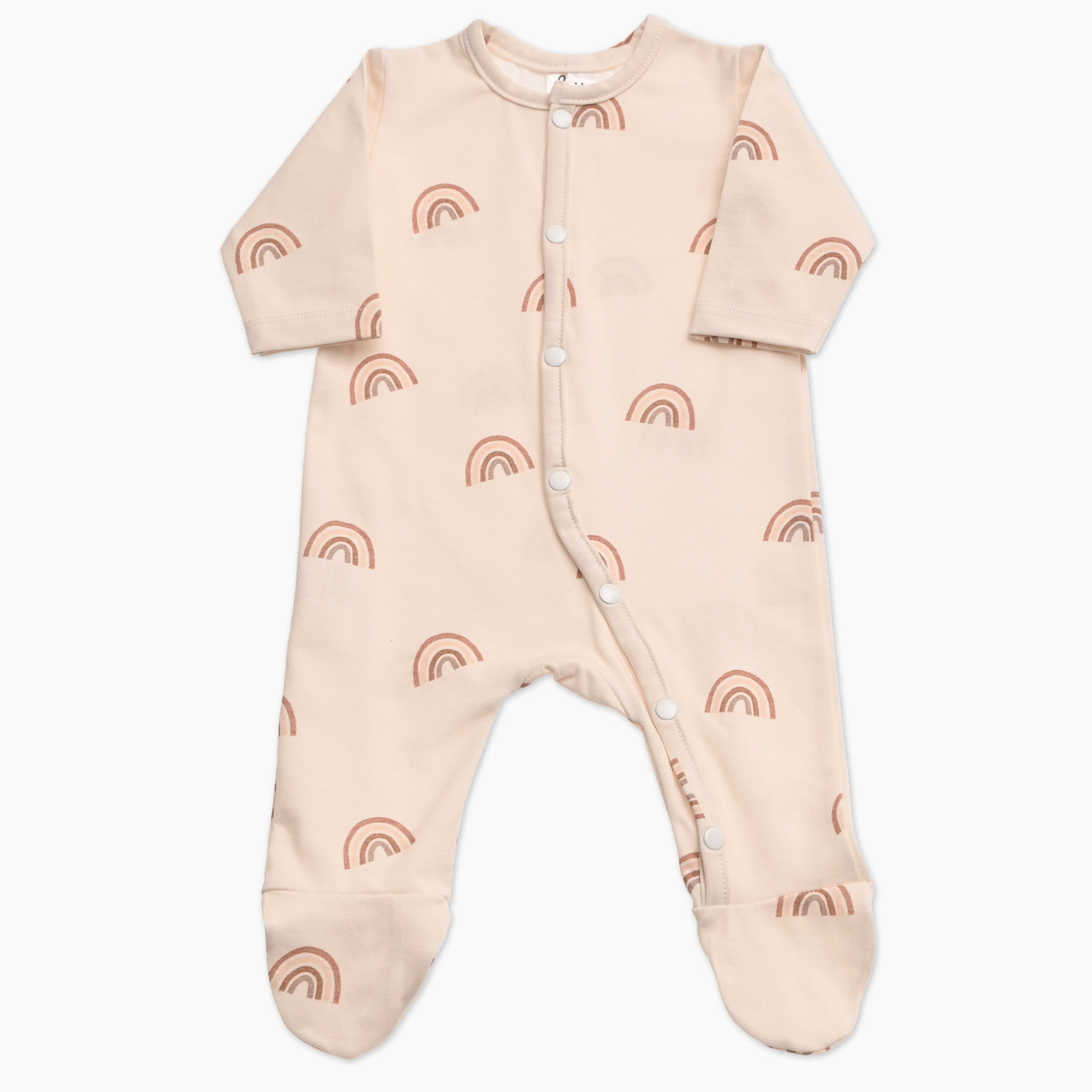 Pajac za dojenčka s stopali v bež barvi s tiskom mavric