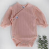 Marjana – - Roza otroški bodi na preklop s ptičkom in volančki