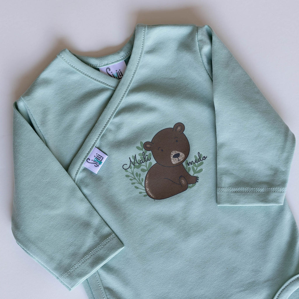 Mint otroški bodi na preklop z medvedkom