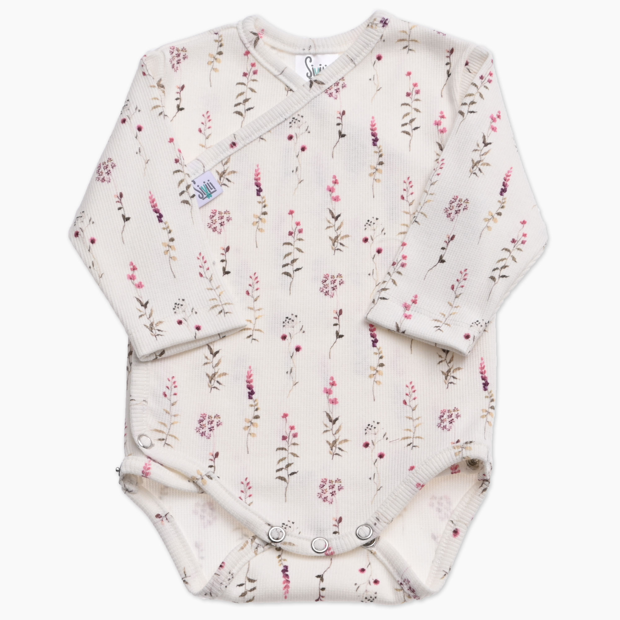 Otroški bodi na preklop v smetana barvi iz rebraste tkanine potiskane z rožicami