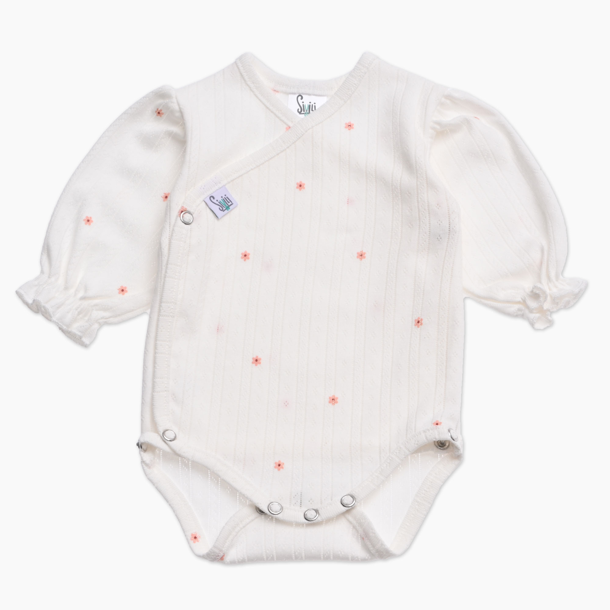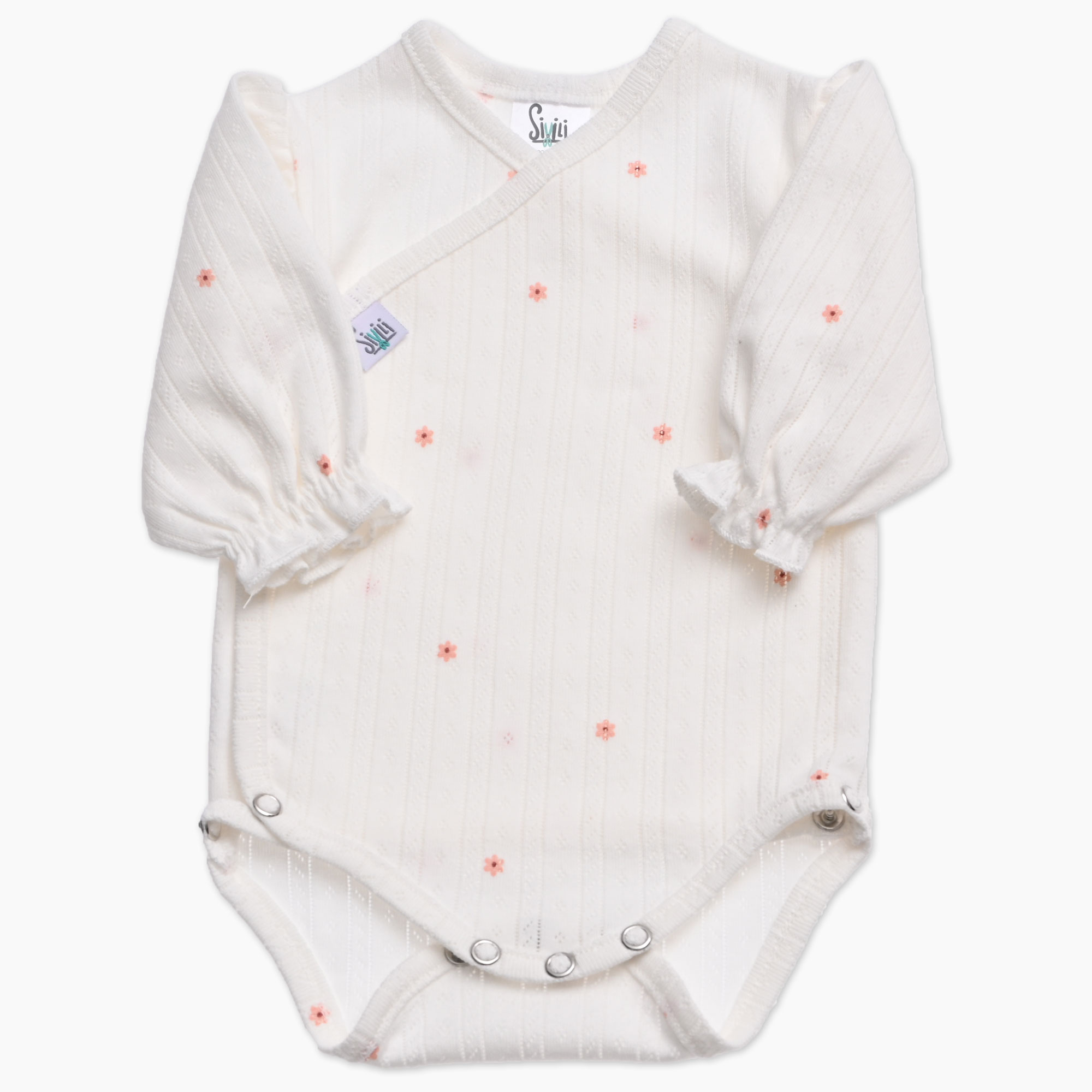 Maja – - Smetana rebrast otroški bodi na preklop z rožico