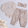 Otroški komplet za novorojenčke v bež barvi s tiskom čebelic in vezeno čebelico