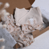 Nežen in vsebinsko usklajen komplet za novorojenčke je popolna izbira za domače in udobne prve dni vaše princeske, ali kot premišljeno izbrano darilo ob rojstvu. Vsebuje 3 mehke in udobne kose, ki skupaj tvorijo prikupen in udoben komplet za vsakodnevno rabo ali posebne trenutke.
