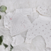 Mehek komplet za novorojenčka je sestavljen iz jopice, hlač, copatkov in kapice in je popolna izbira za udobno in stilsko oblačenje vašega sončka. Izdelan je iz mehkega bombažnega materiala, ki zagotavlja nežnost in udobje primerno nežni in občutljivi otroški koži. Jopica s preklopom omogoča enostavno preoblačenje. Hlače imajo udoben elastičen pas, ki se nežno prilagodi telesu in ne omejuje gibanja. Copatki so zasnovani z visokim elastičnim patentom, ki poskrbi, da so vedno na pravem mestu, hkrati pa so nežni do otroških nogic. Kapica z zaščito za ušeska pa dopolni celoten videz. Ta komplet za novorojenčka je idealen za vsakodnevno nošenje, ali kot darilo, saj združuje funkcionalnost, udobje in čaroben dizajn. Tudi po velikem številu pranj bo ohranil barvo in obliko.in Da boste lažje odnesli svojega novega člana iz porodnišnice. Ker smo uporabili enobarvno in tiskano tkanino smo za dekoracijo dodali le vezenje na hlače. Jopica se zapenja z vedno modernimi gumbi. Zaključek v pasu in pri copatkih so narejeni iz elastične in raztegljive tkanine, ki omogoča boljše prilagajanje. Komplet je nezahteven za vzdrževanje in bo tudi po velikem številu pranj ohranili barvo in obliko.