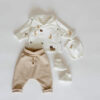Čudovit in izjemno nežen bombažen komplet za novorojenčke je popolna izbira za prve dni življenja – za domače udobje, obisk porodnišnice, ali kot skrbno izbrano darilo ob rojstvu.