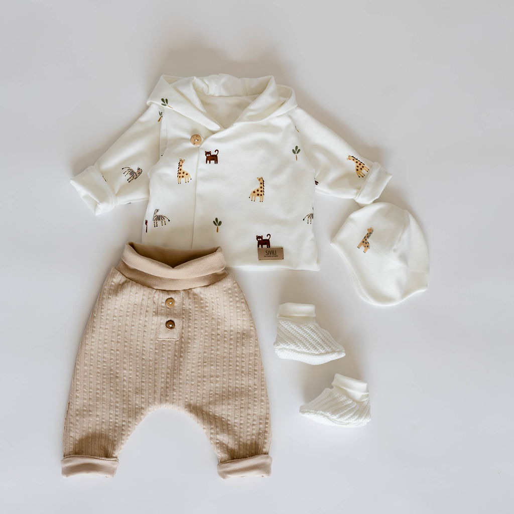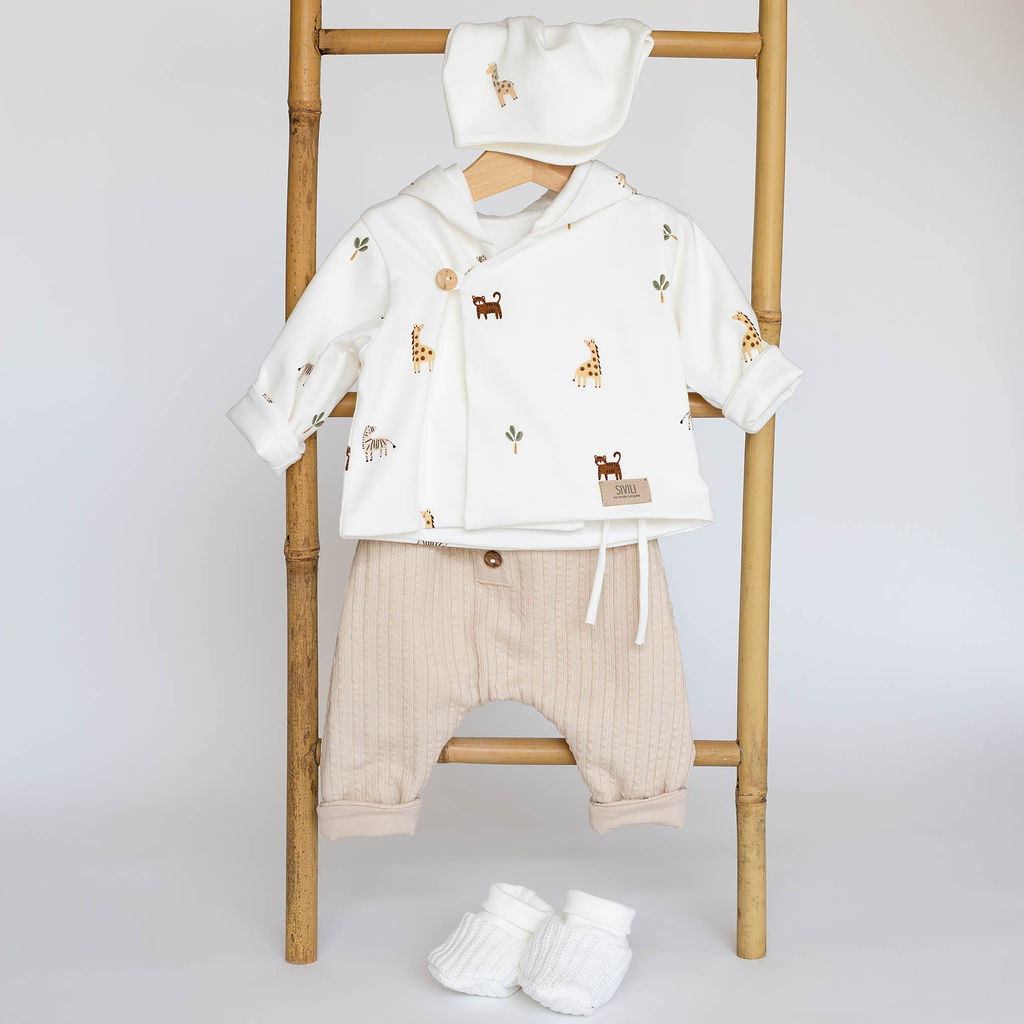Komplet za novorojenčke v smetana in bež barvi z žirafo