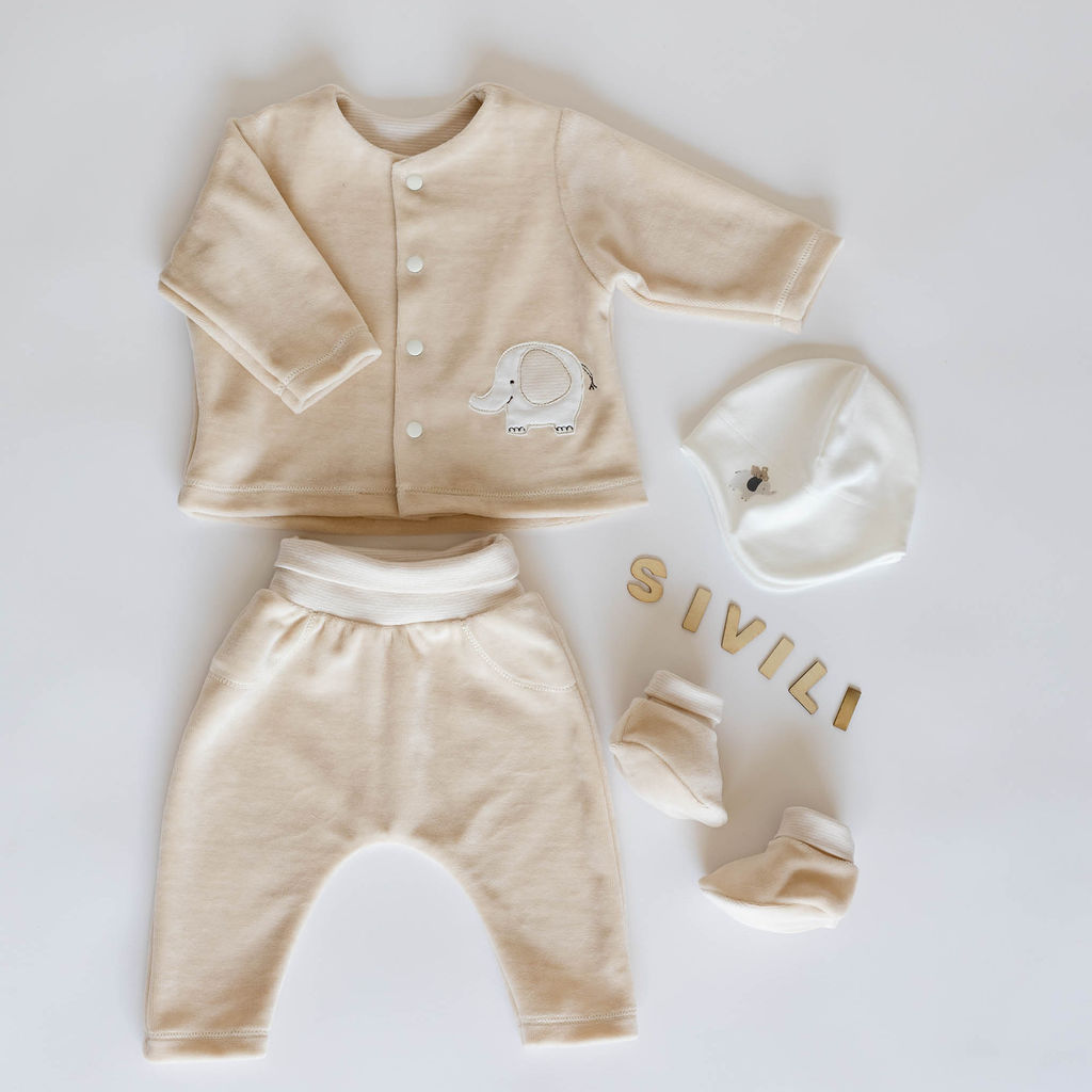 Plišast komplet za novorojenčke v bež barvi s slončkom
