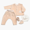 Marjeta – - Komplet za novorojenčka z rožicami - jopica, kapica, hlače in copati