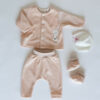 Marjeta – - Komplet za novorojenčka z rožicami - jopica, kapica, hlače in copati