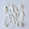 Čudovit in izjemno nežen bombažen komplet za novorojenčke je popolna izbira za prve dni življenja – za domače udobje, obisk porodnišnice, ali kot skrbno izbrano darilo ob rojstvu.