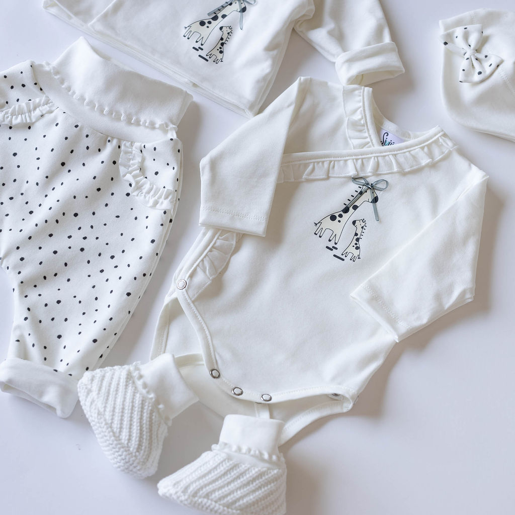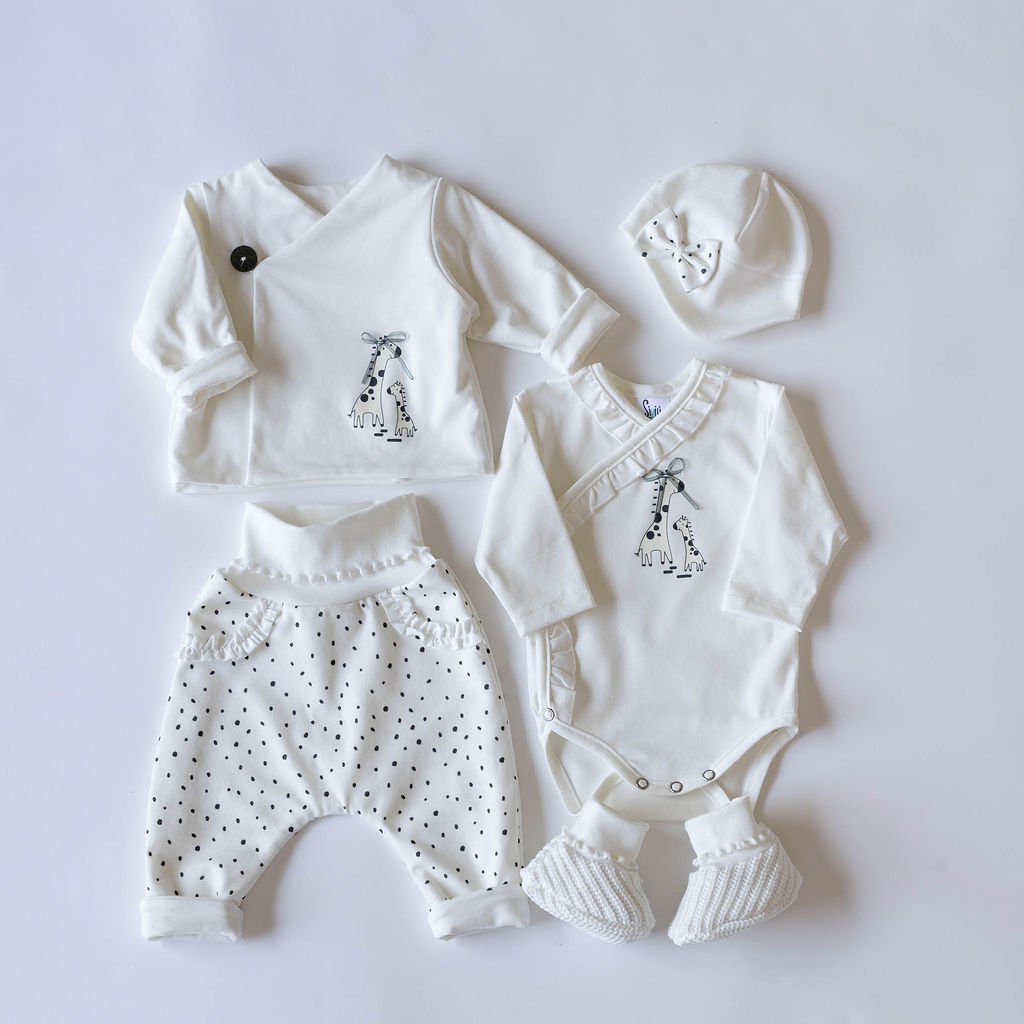 Smetana komplet za novorojenčke z žirafo in pikicami