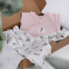 Nežen in vsebinsko usklajen komplet za novorojenčke je popolna izbira za domače in udobne prve dni vaše princeske, ali kot premišljeno izbrano darilo ob rojstvu. Vsebuje 3 mehke in udobne kose, ki skupaj tvorijo prikupen in udoben komplet za vsakodnevno rabo ali posebne trenutke.