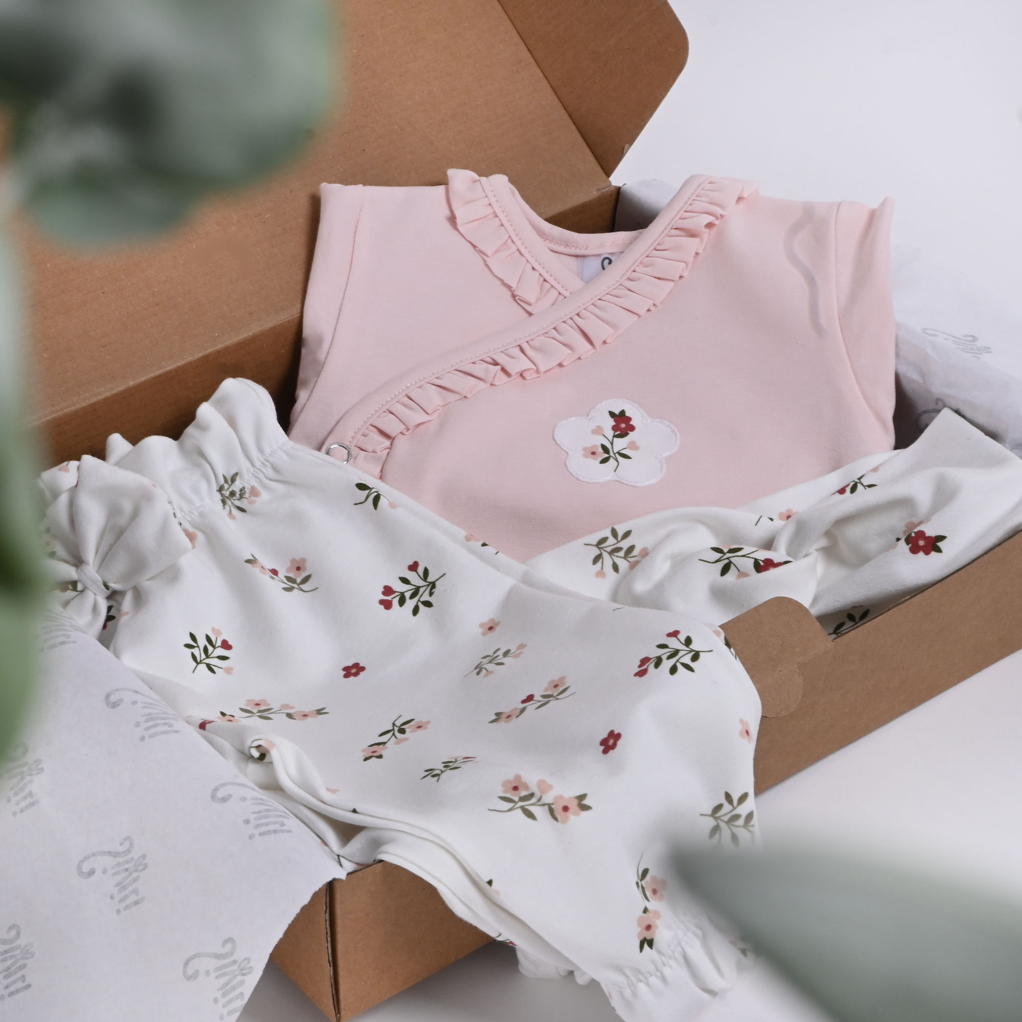 Nežen in vsebinsko usklajen komplet za novorojenčke je popolna izbira za domače in udobne prve dni vaše princeske, ali kot premišljeno izbrano darilo ob rojstvu. Vsebuje 3 mehke in udobne kose, ki skupaj tvorijo prikupen in udoben komplet za vsakodnevno rabo ali posebne trenutke.