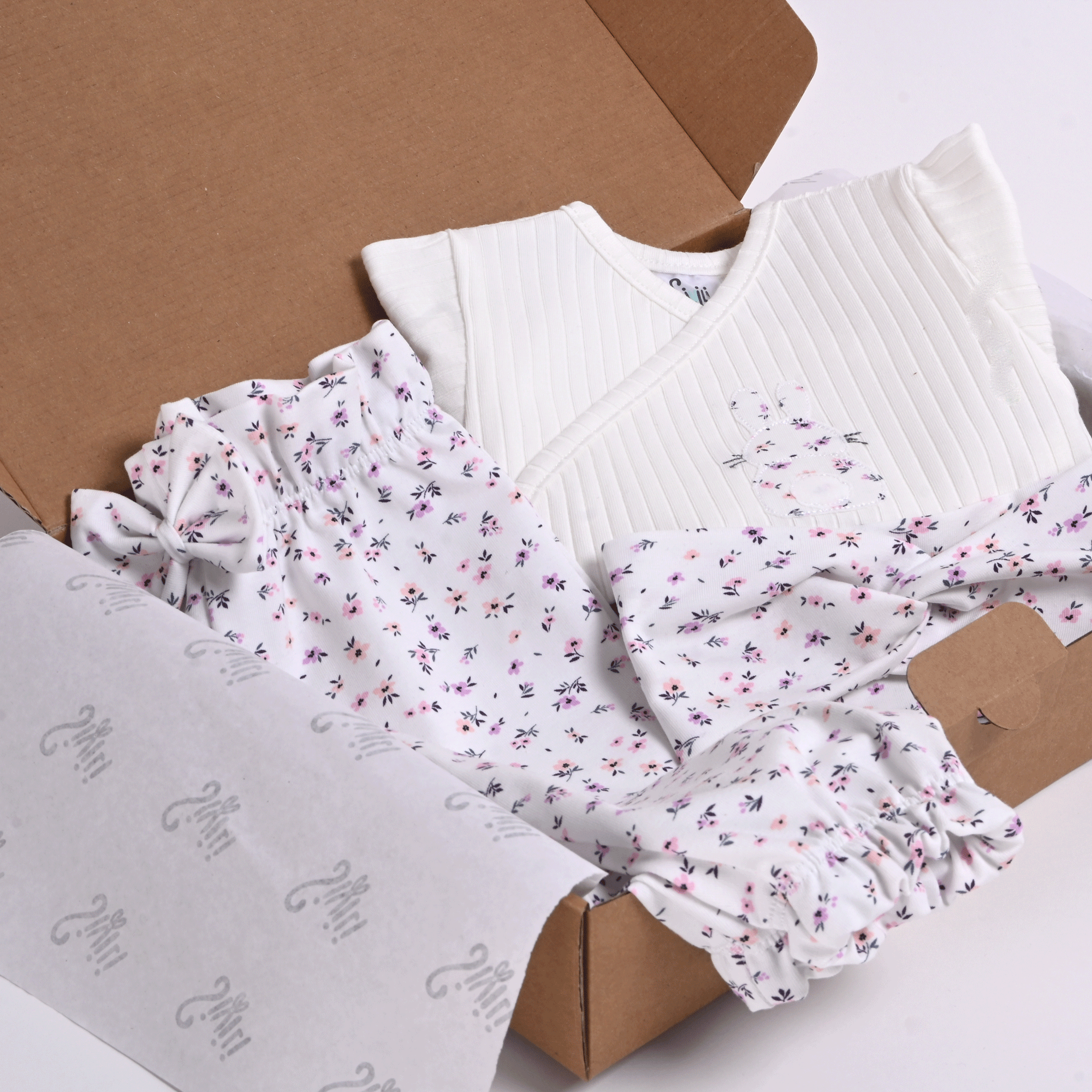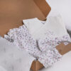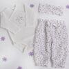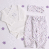 Nežen in vsebinsko usklajen komplet za novorojenčke je popolna izbira za domače in udobne prve dni vaše princeske, ali kot premišljeno izbrano darilo ob rojstvu. Vsebuje 3 mehke in udobne kose, ki skupaj tvorijo prikupen in udoben komplet za vsakodnevno rabo ali posebne trenutke.