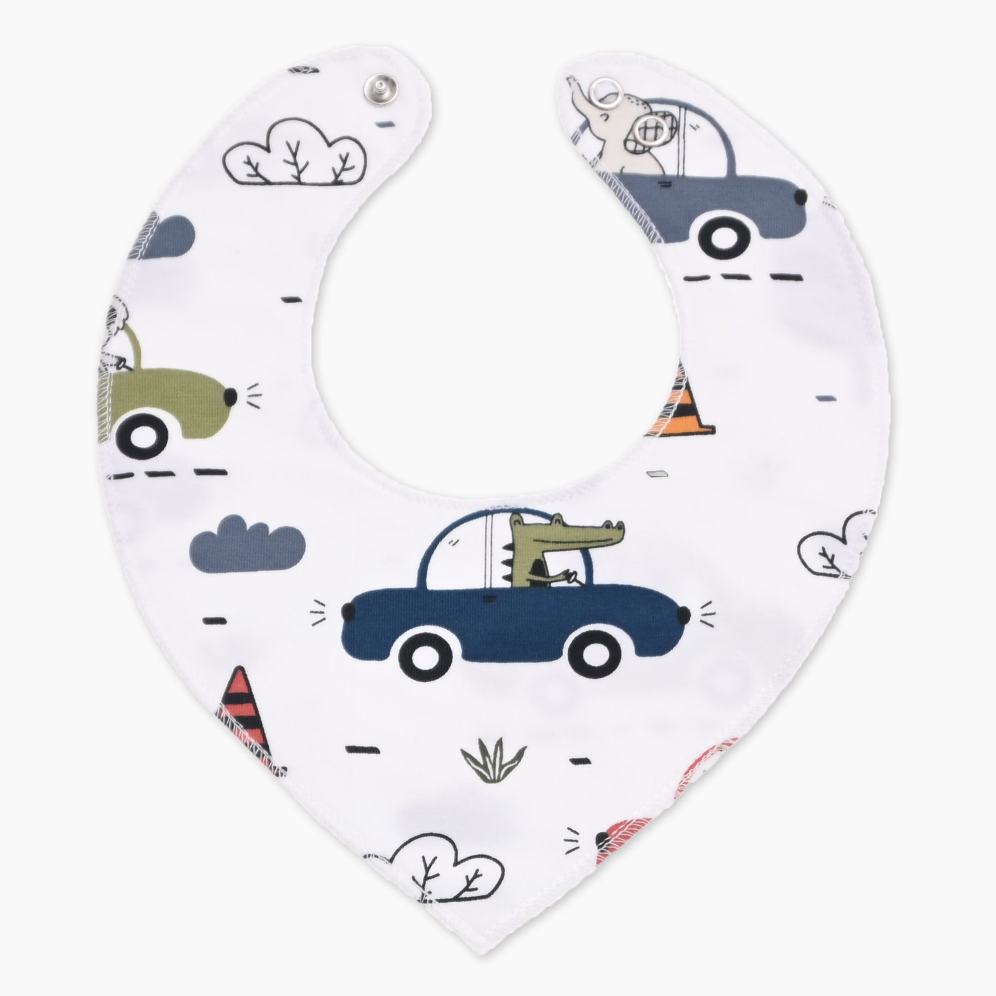 Otroški slinček v beli barvi z igrivim tiskom avtomobilov je praktična in vzdržljiva izbira za vsakodnevno uporaba doma ali v vrtcu. Zaradi premišljene 3-slojne zasnove učinkovito ščiti oblačila in zagotavlja dolgotrajno uporabo.