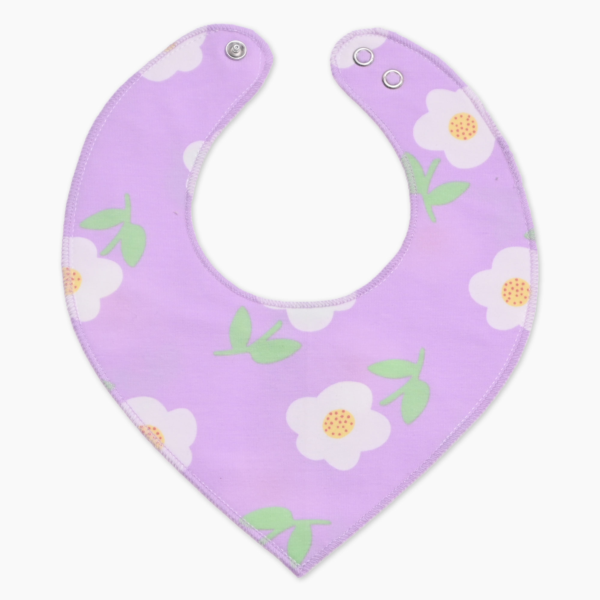 Nepremočljiv otroški slinček v lila barvi z nežnim tiskom marjetic je popolna kombinacija funkcionalnosti in estetskega videza. Idealen je za vsakodnevno uporabo pri hranjenju ali v obdobju izraščanja zob, saj učinkovito ščiti oblačila pred vlago in madeži.