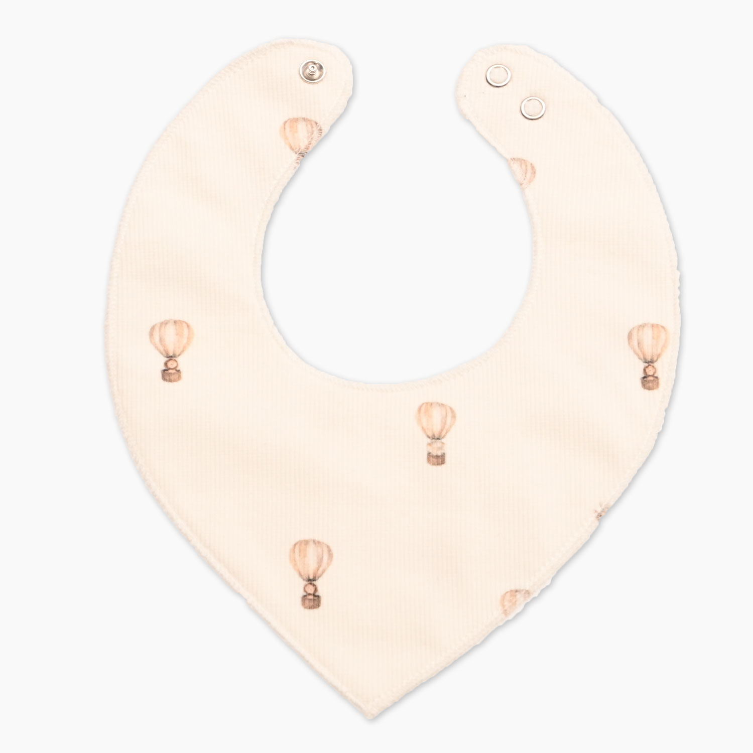 Zgornjo in spodnjo plast krasi prisrčen tisk z balončki in pilotom medvedkom, ki poskrbi za ljubek, otroški videz in popestri vsak dan. Slinček se zapenja z netki brez niklja, ki omogočajo nastavljanje obsega okrog vratu, zato se lepo prilega različnim starostim in ne draži kože.