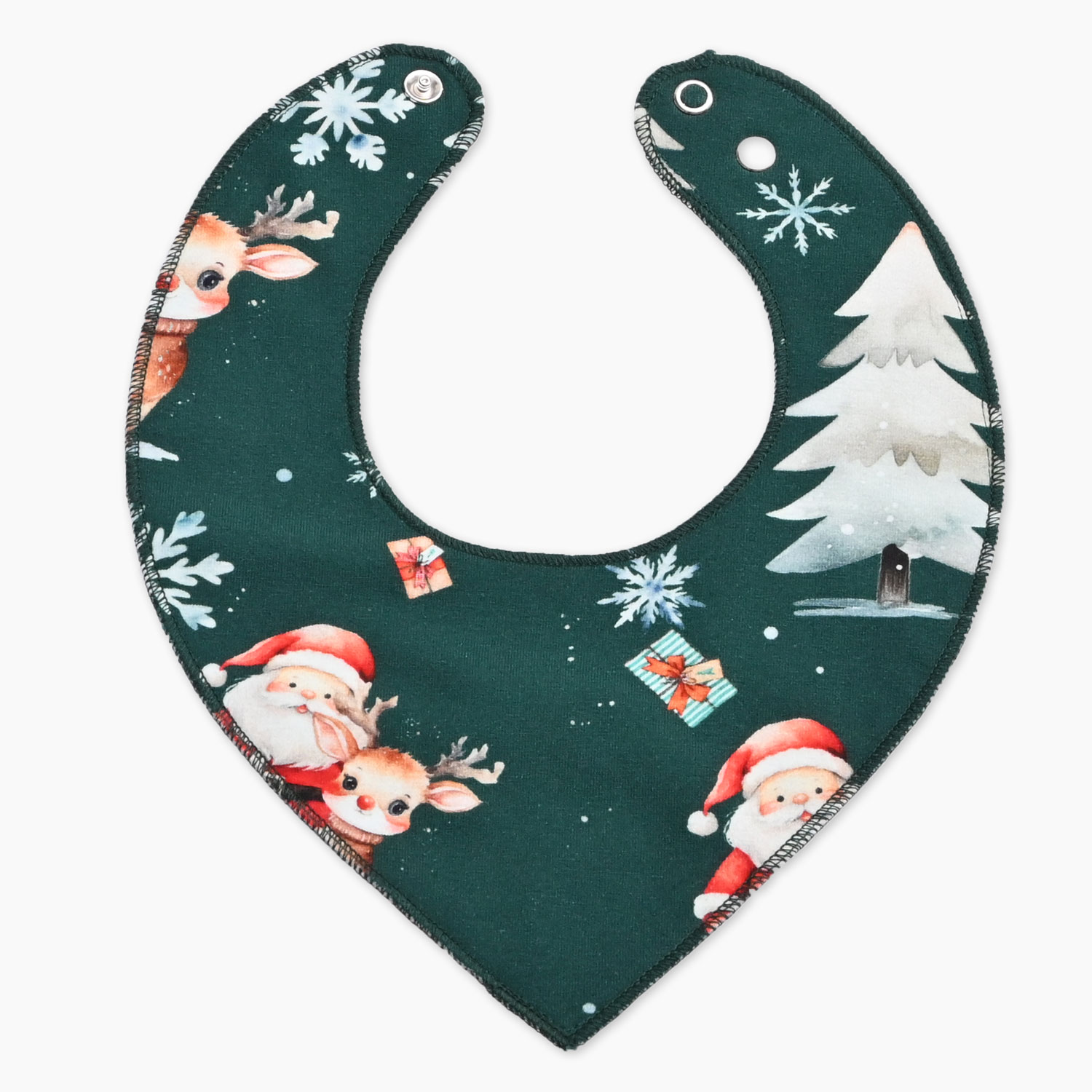 Slinček za dojenčka v zeleni barvi s tiskom Božičkov in snežink