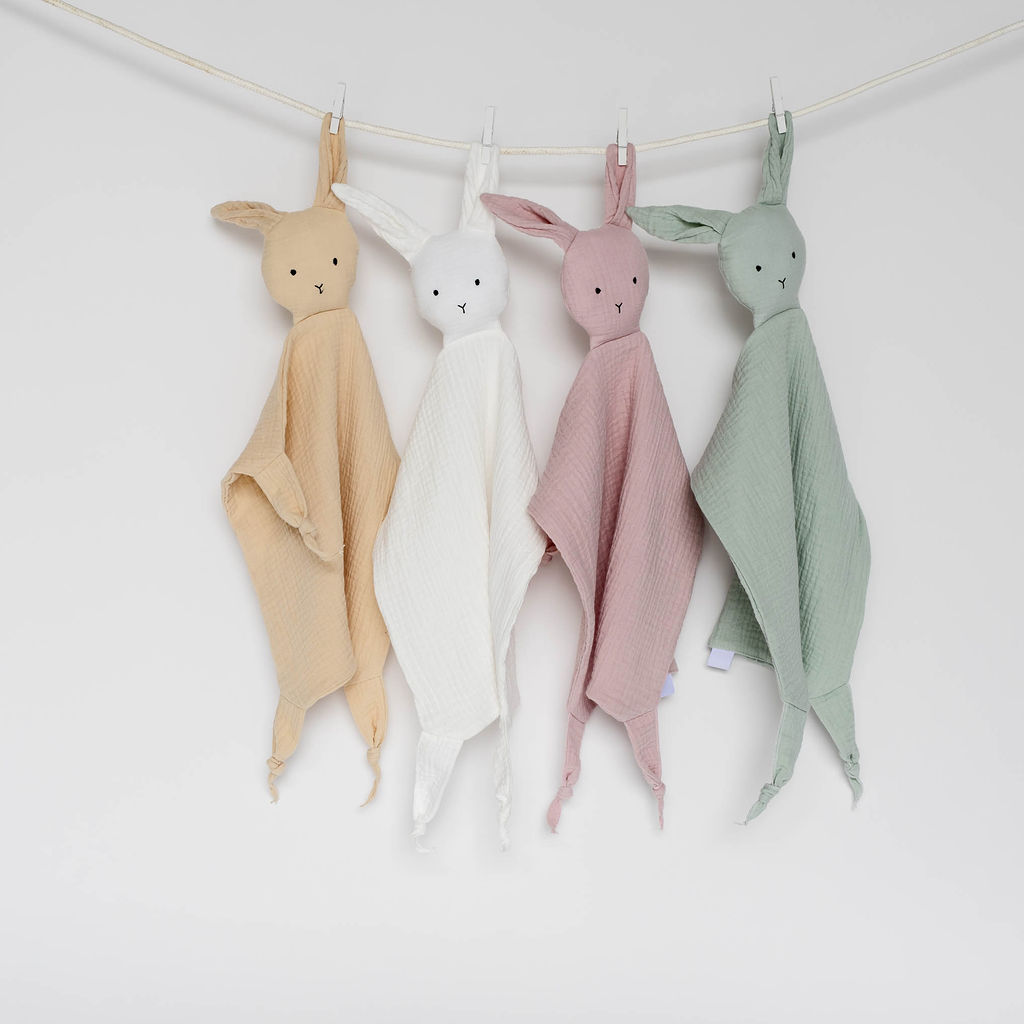 Ta prikupen zajček bo postala prvi najboljši prijatelj vašega malčka. Mehek muslin je popoln material za male ročice, saj bodo vaši sončki z lahkoto prijeli, božali ali objeli tega simpatičnega zajčka. Idealna je za tolaženje v vozičku, posteljici ali na poti. Tako bo zajček postal malčkov najboljši prijatelj, ki prinaša občutek varnosti in topline.