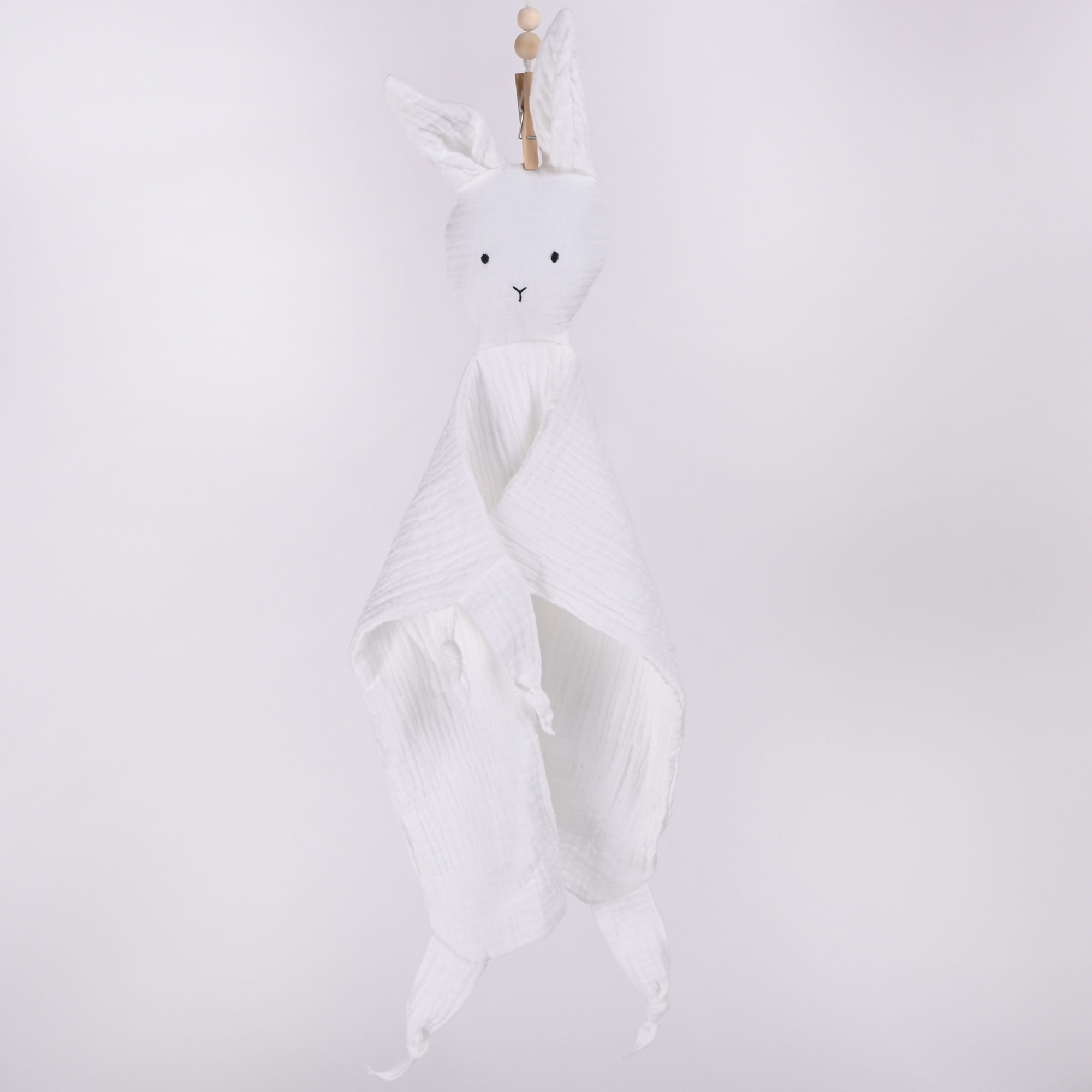 Ta prikupen zajček bo postala prvi najboljši prijatelj vašega malčka. Mehek muslin je popoln material za male ročice, saj bodo vaši sončki z lahkoto prijeli, božali ali objeli tega simpatičnega zajčka. Idealna je za tolaženje v vozičku, posteljici ali na poti. Tako bo zajček postal malčkov najboljši prijatelj, ki prinaša občutek varnosti in topline.