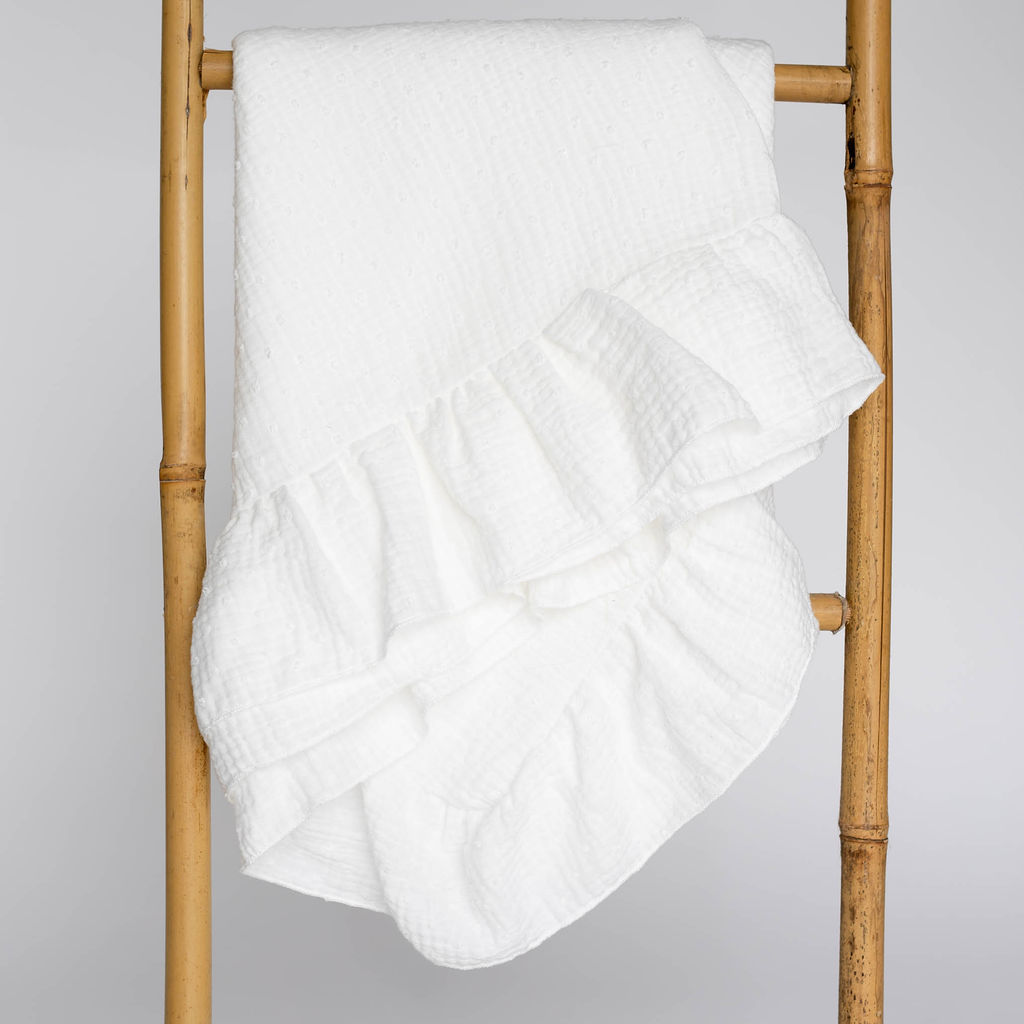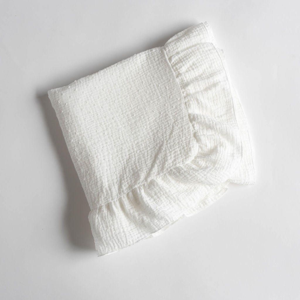Bombažna tetra plenica z volani in vezenimi pikami iz muslina – vsestranska mehkoba za vsak dan