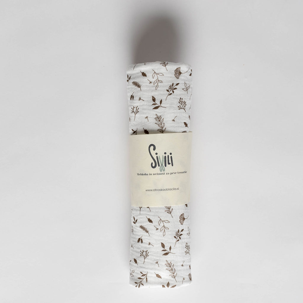 Tetra plenica iz muslina s tiskom temno rjavih rožic 120 x 120 cm