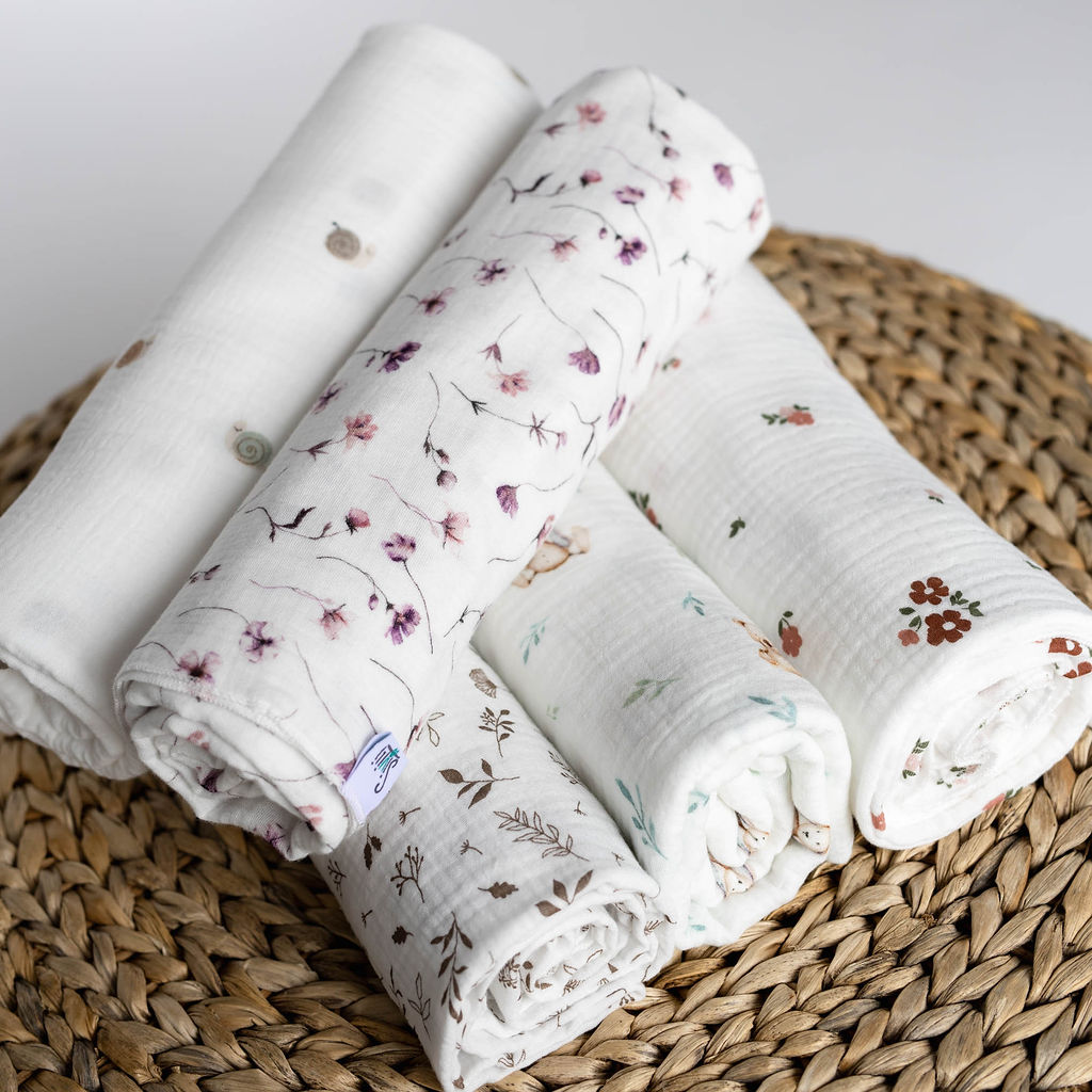 Bombažna tetra plenica z rožicami iz muslina – vsestranska mehkoba za vsak dan