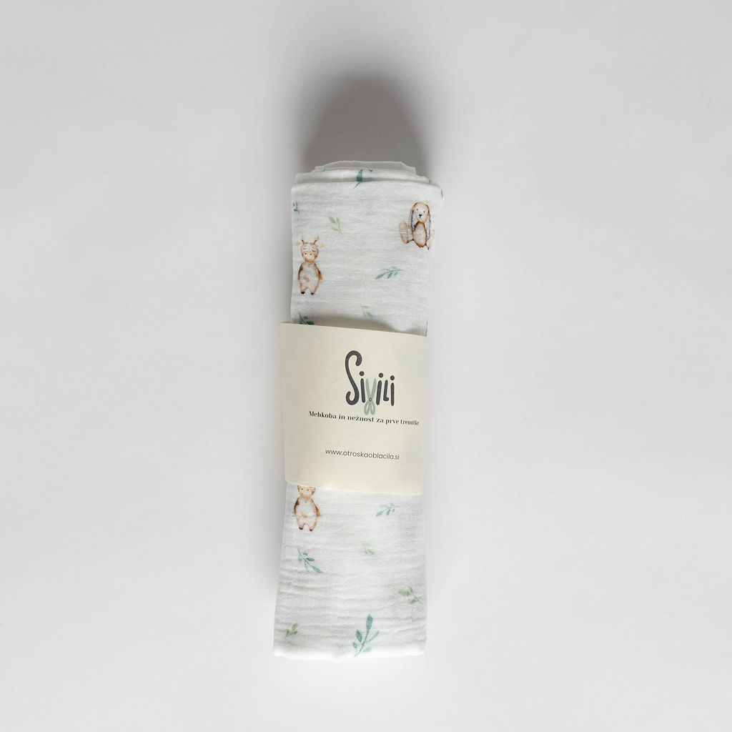 Bombažna tetra plenica z medvedki in zajčkii iz muslina – vsestranska mehkoba za vsak dan