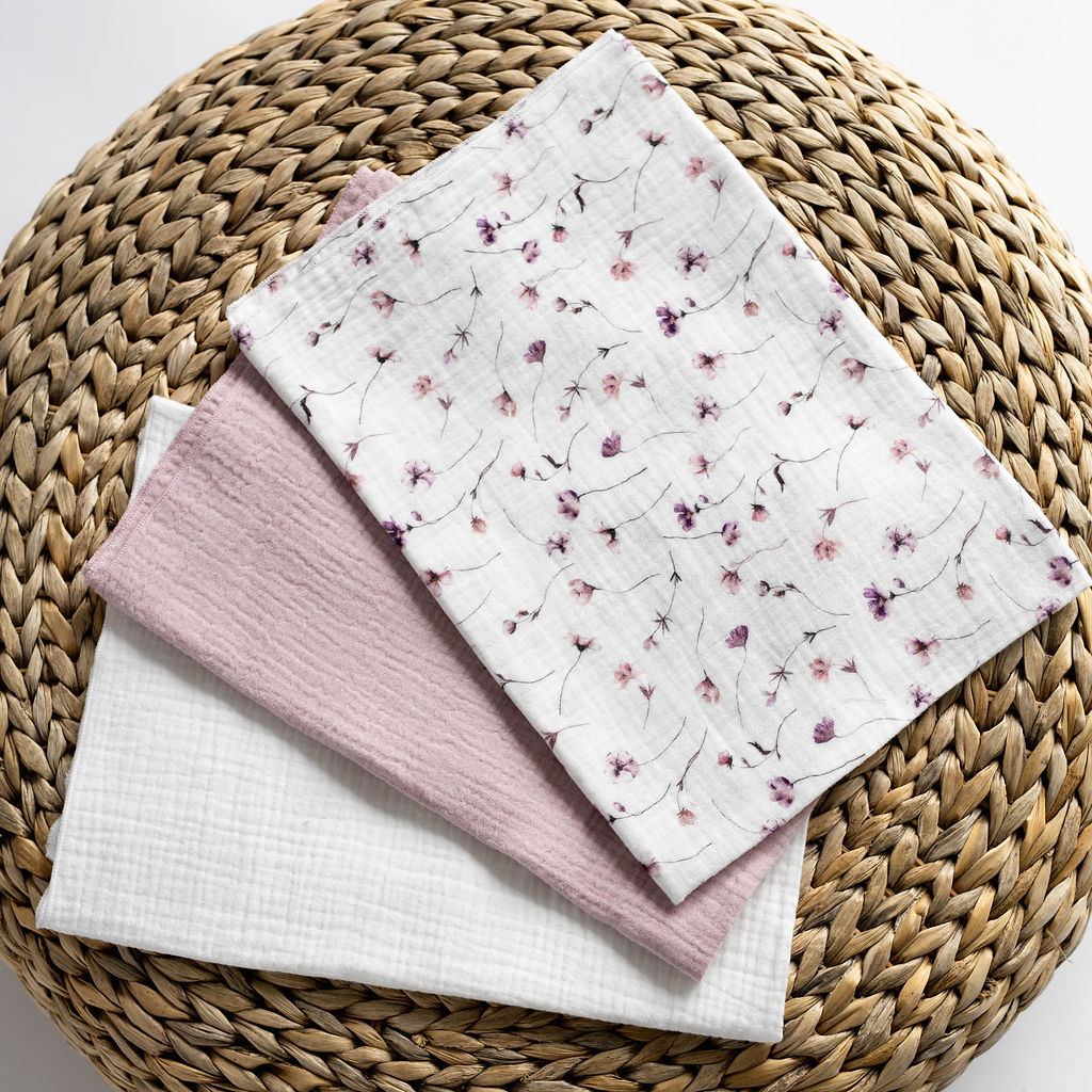 Set treh bombažnih pleničk – nežnost v lični darilni embalaži