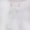 Otroške žabice za dojenčka s stopali iz smetana tkanine potiskane s temno sivimi pikicami