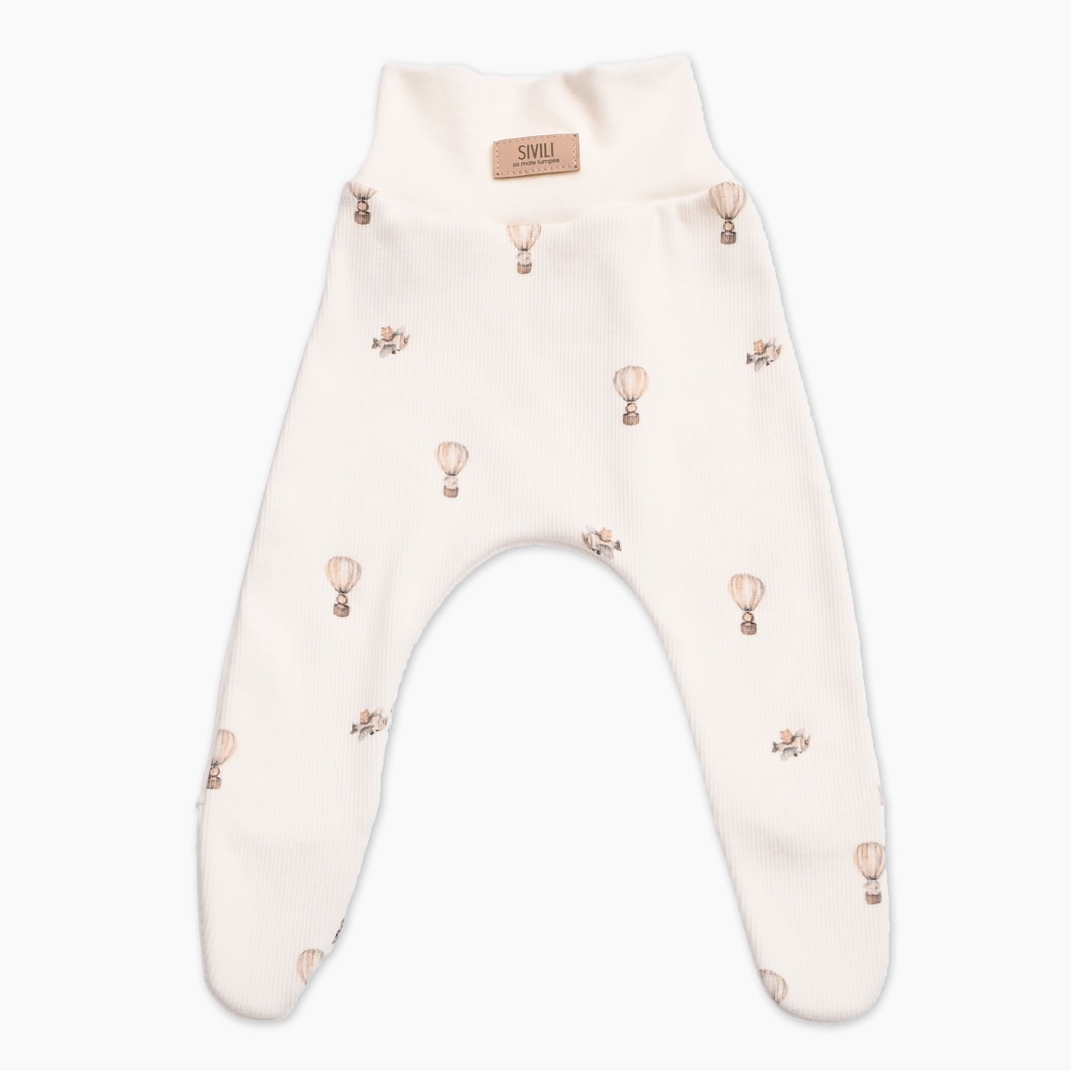 Otroške žabice za dojenčka iz smetana rebrastega materiala s tiskom balončkov