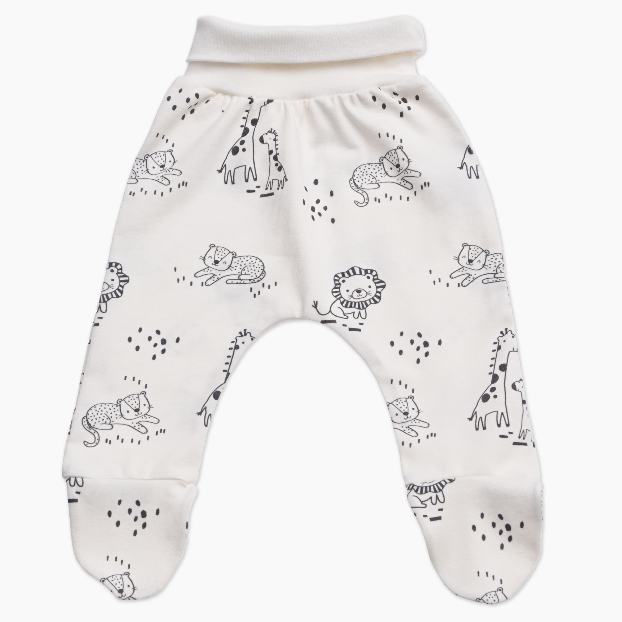 Žabice so v smetana barvi s prisrčnim tiskom leva, žirafe in tigra, ki dodaja igriv in ljubeč detajl. Elastičen patent v pasu zagotavlja enostavno oblačenje, dobro prileganje in udobje brez tiščanja. Vsak kos je ročno izdelan v majhni seriji, z mislijo na varnost, prijaznost otroku in vsakdanjo uporabnost.